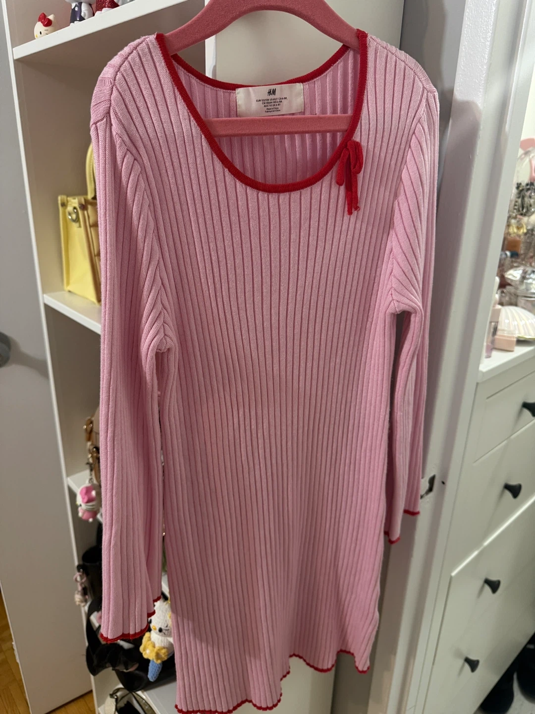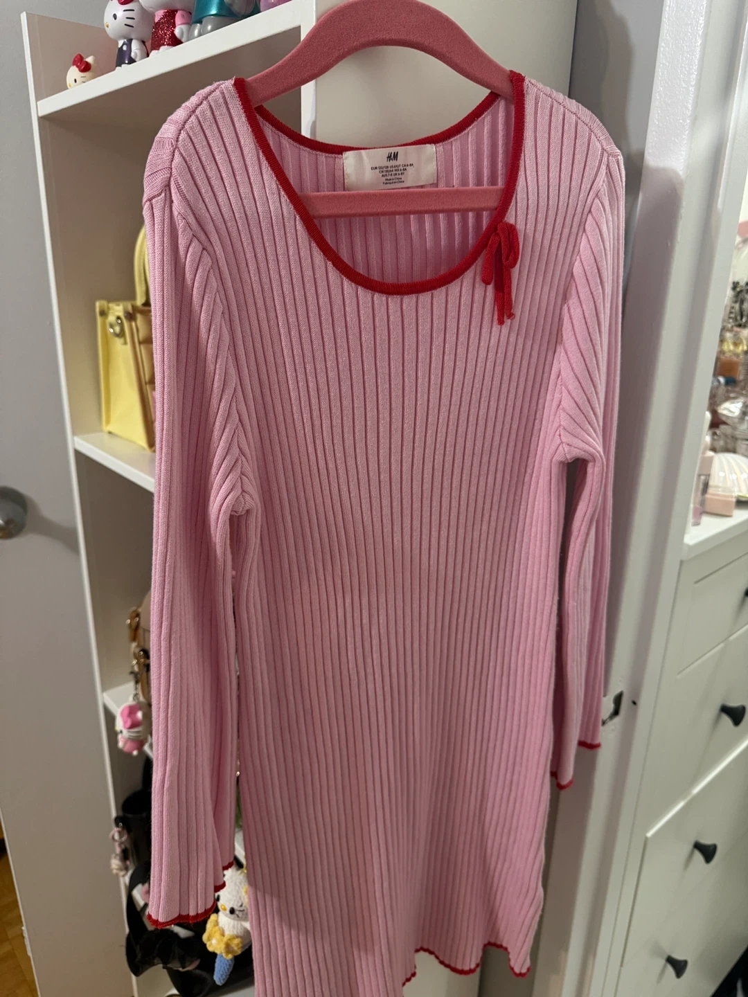 Selling a cute H&M pink ribbed knit dress with red trim! It's in great condition and comes from a smoke-free home. The size is EUR 122/128 which is US 6X/7 or CA 6-8A. Perfect for your little one!