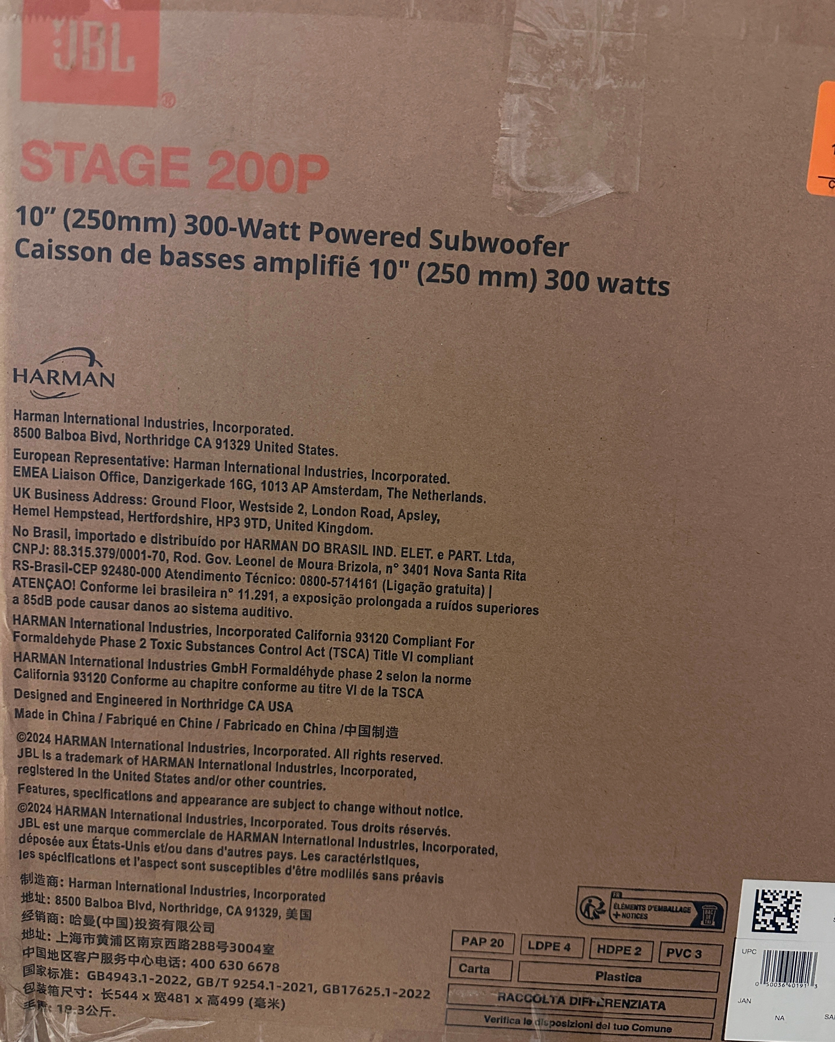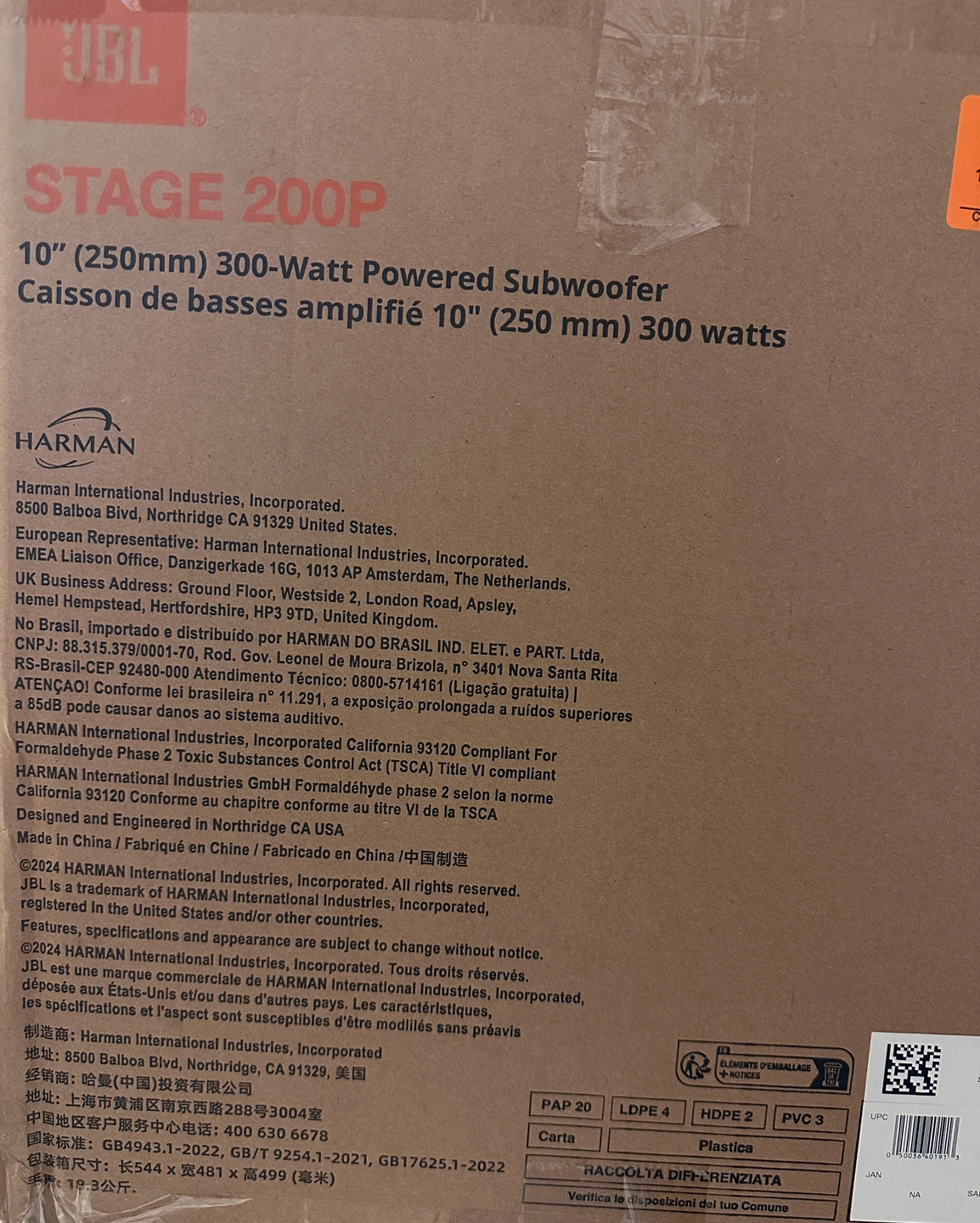 JBL Stage 2 200P Black 10" 300 Watts Powered Subwoofer NEW