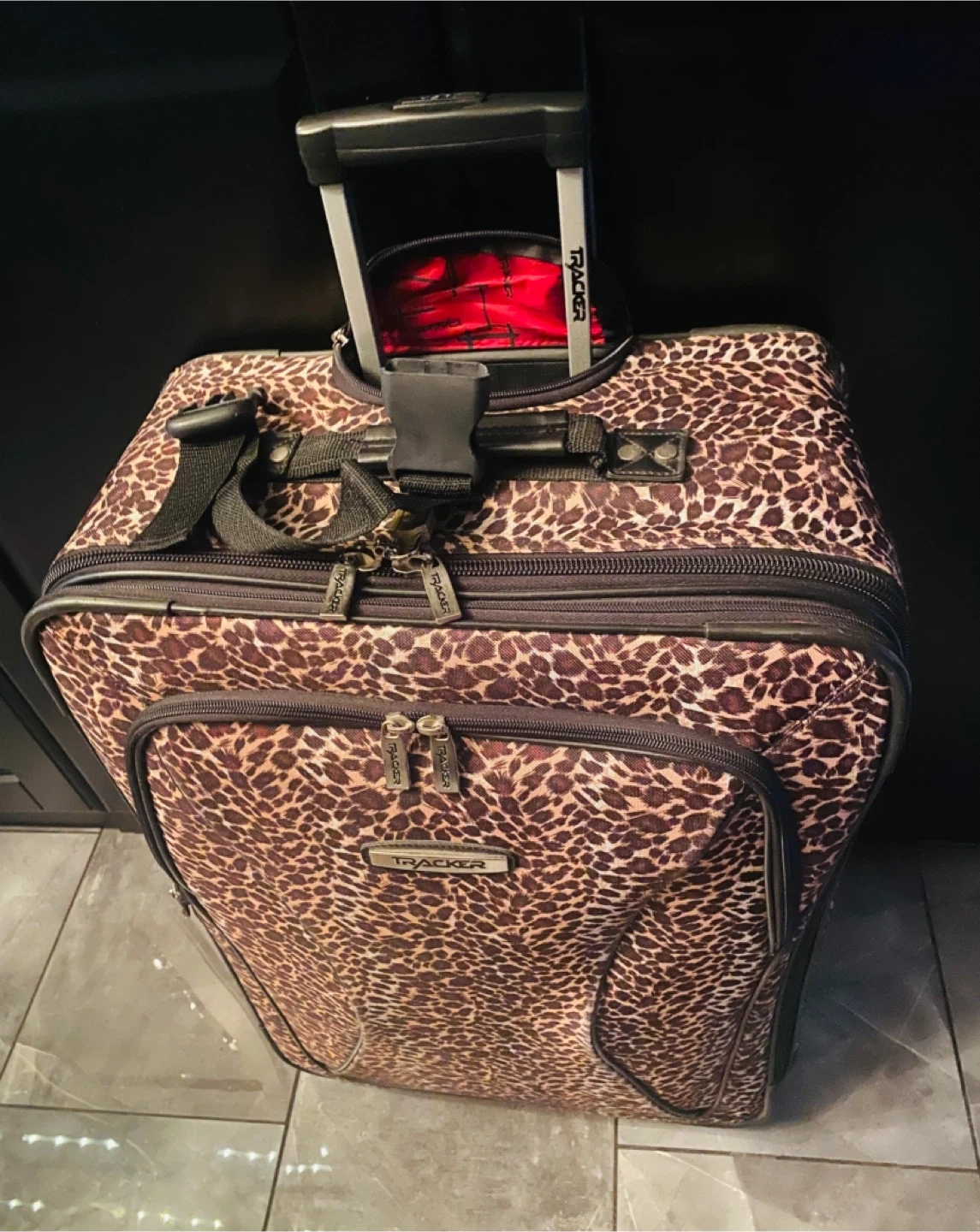 Selling a Tracker check-in sized suitcase with a bold leopard print! It's in excellent very clean condition and very roomy. No damage, rips or stains. Features: