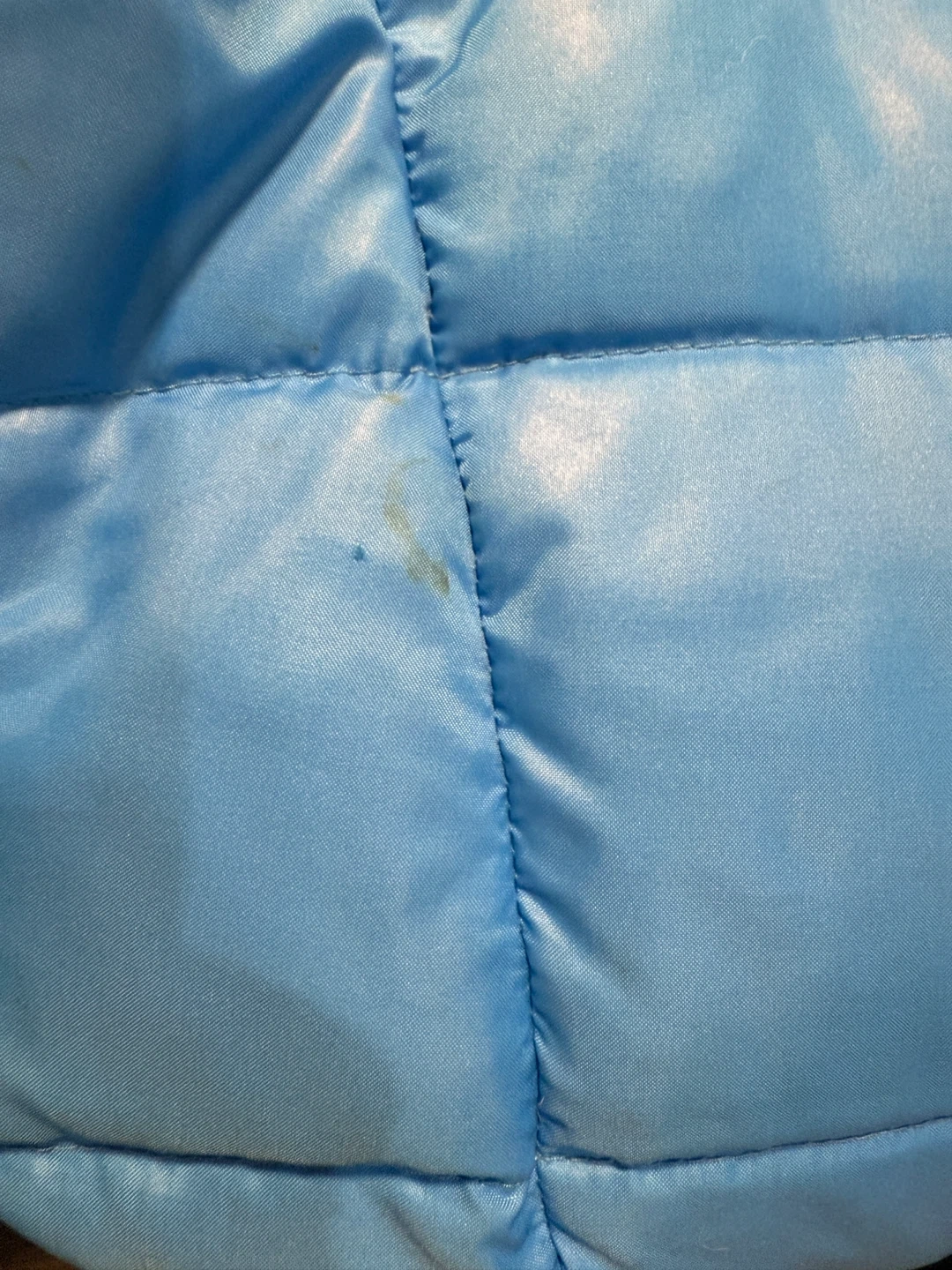 353Selling a Bogner puffer jacket in a vibrant blue color. It has a few small marks, as shown in the photos. The zipper pull has the Bogner logo on it. It's a stylish and warm jacket for the colder months!