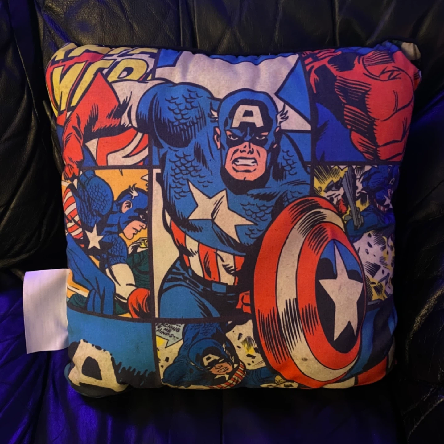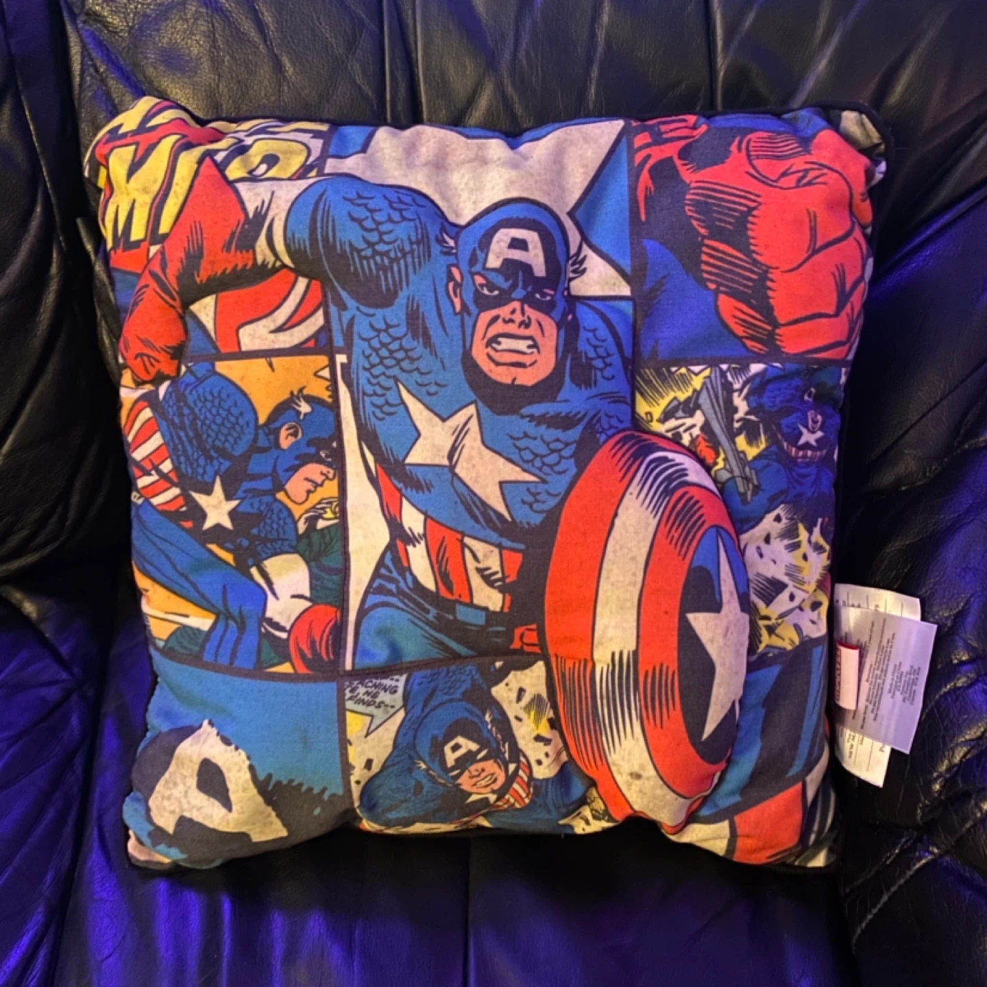 Add a pop of superhero style to your space with this Marvel Captain America throw pillow! The shell and filling are both 100% polyester, making it soft and easy to care for. Clean and in excellent 9/10 like-new condition.