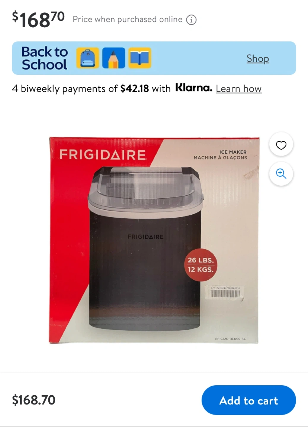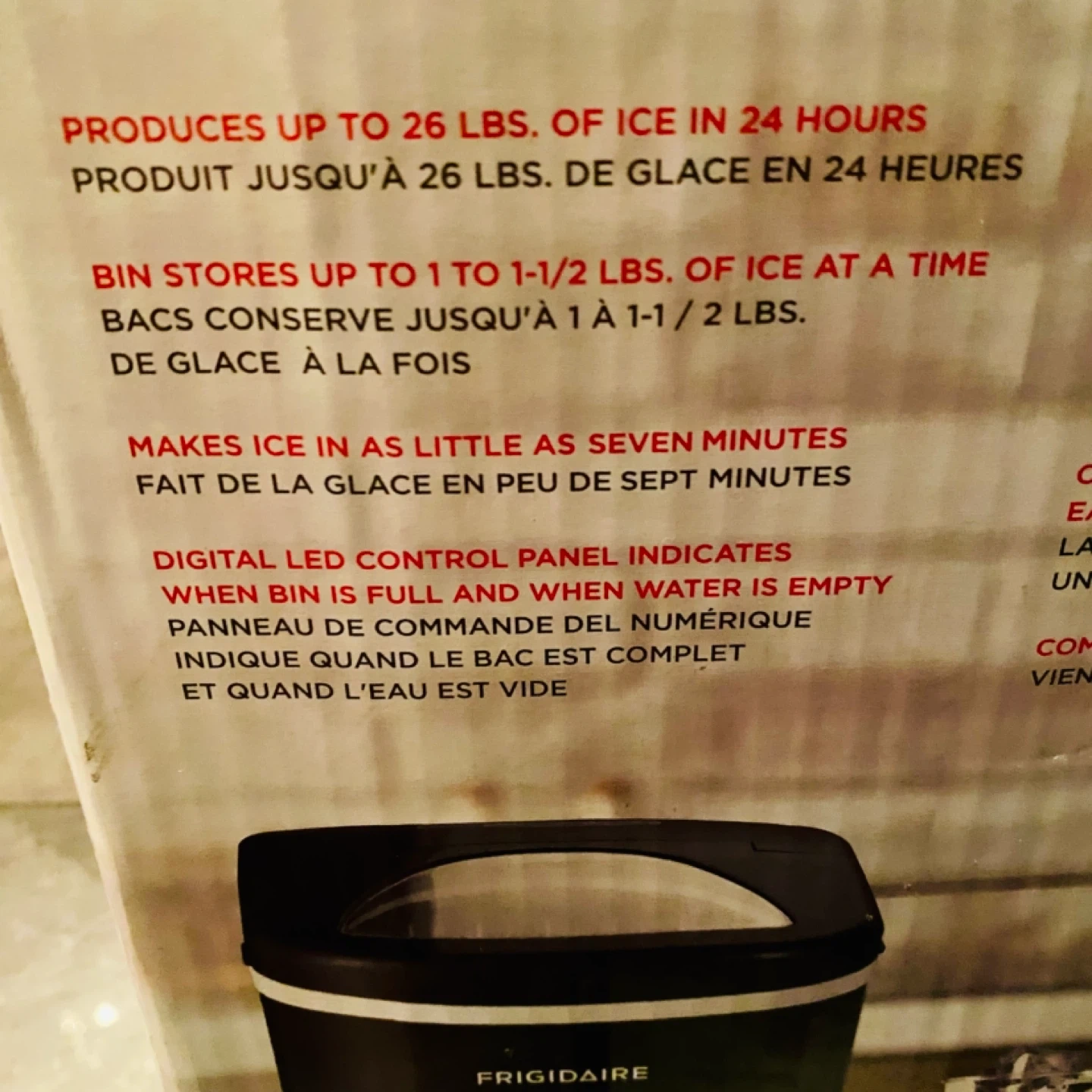 Selling a Frigidaire ice maker. Tested it out and works great! Was a cool gift that we do not have room for in our tiny kitchen. Perfect for parties and quick smoothies.