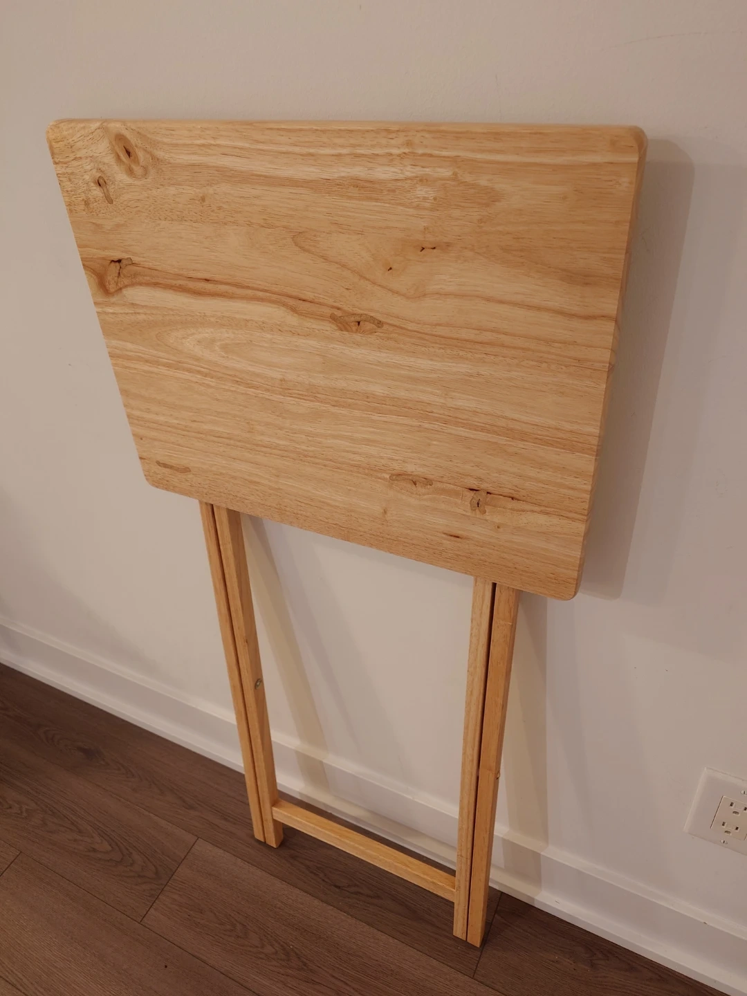 Selling a simple wooden folding table. It's in great shape and perfect as a side table or for small spaces. Easy to fold up and store away when not in use!