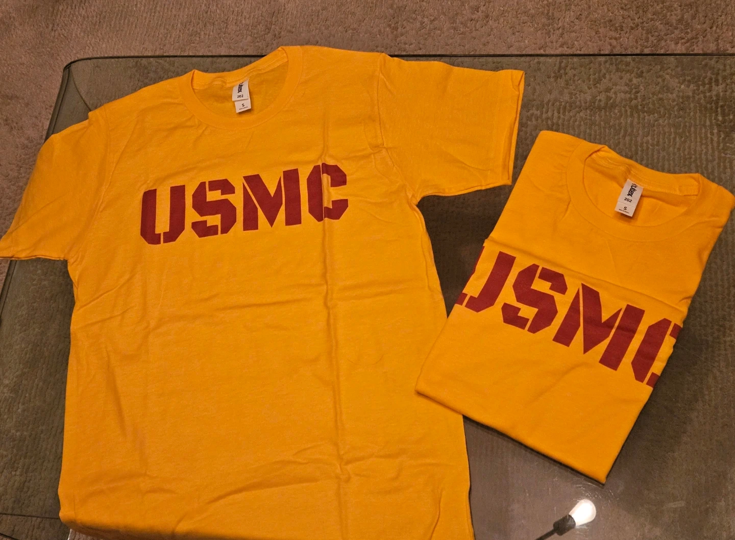 I'm selling two new USMC t-shirts in size small - just like the ones in BOOTS on Netflix! I ordered the amount of shirts more than I needed, so I'm selling them here; I didn't wear them at all, so they are new! These are fun and cute t-shirts.