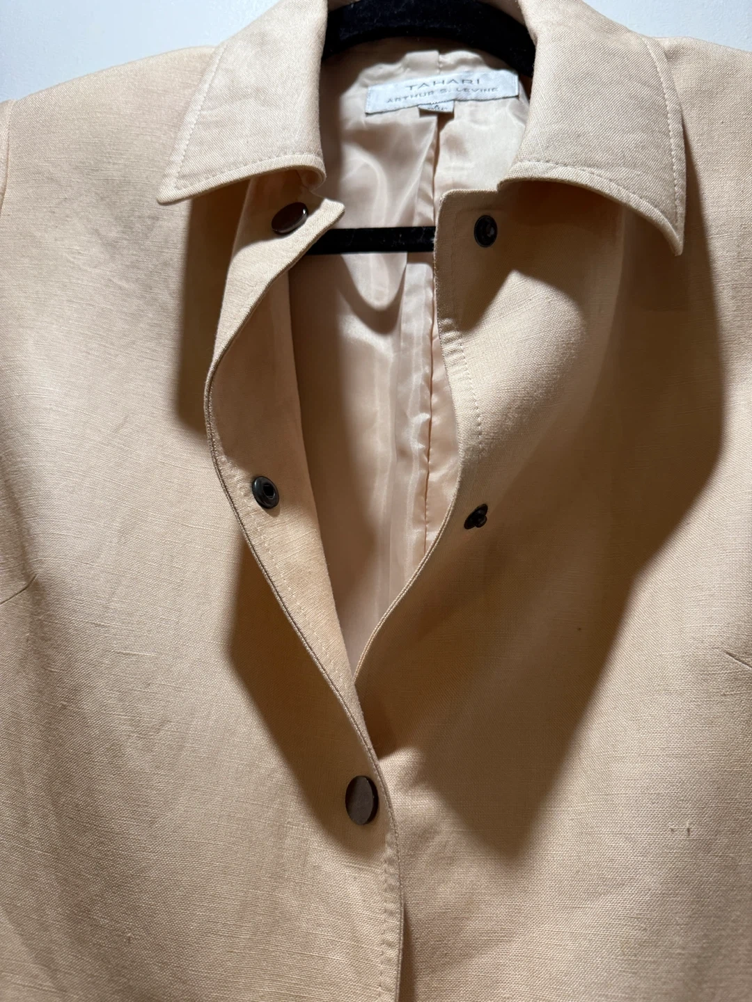 353Selling a Tahari Arthur S. Levine jacket in a beautiful beige color! This jacket is a size 6 and would be a great addition to your wardrobe. It's in great condition and ready for a new home