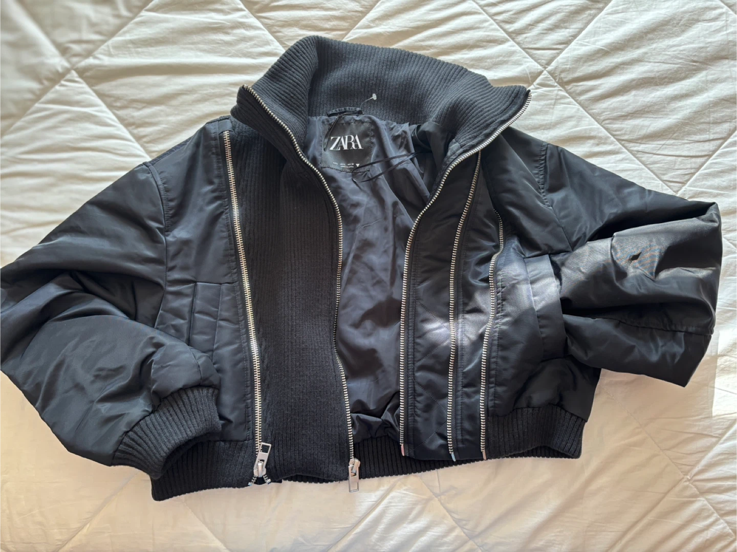 1 / 31 / 3Buy & SellUnique designer Zara BomberUnique designer Zara Bomber$40Beautiful charming and warm navy blue BomberConditionNewSizeMBrandZaraWHERE TO MEETCheck LocationView MapSELLERLolaCorso Italia301 review2 chats·4 favorites·42 viewsSEND CHAT TO SELLERHi Lola! I’m interested in your listing.Hi Lola! I’m interested in your listing.Get the Karrot app to chatSign In to chat