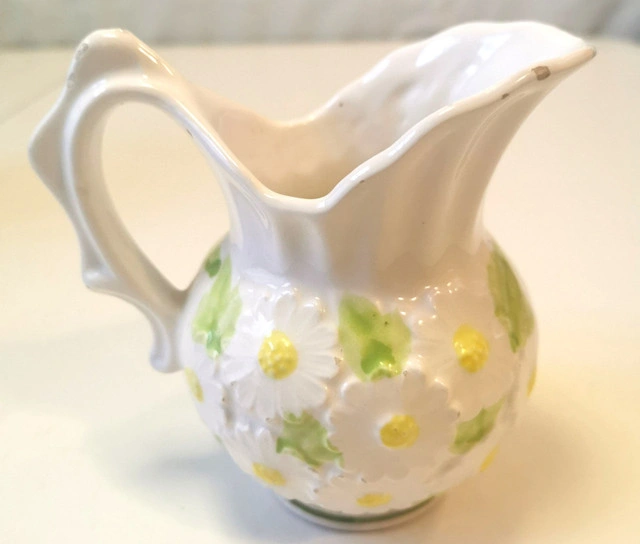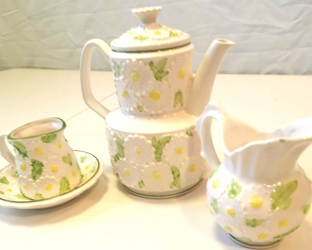 Enesco Daisy Tea Pot Creamer Saucer And Milk Lid Ceramic