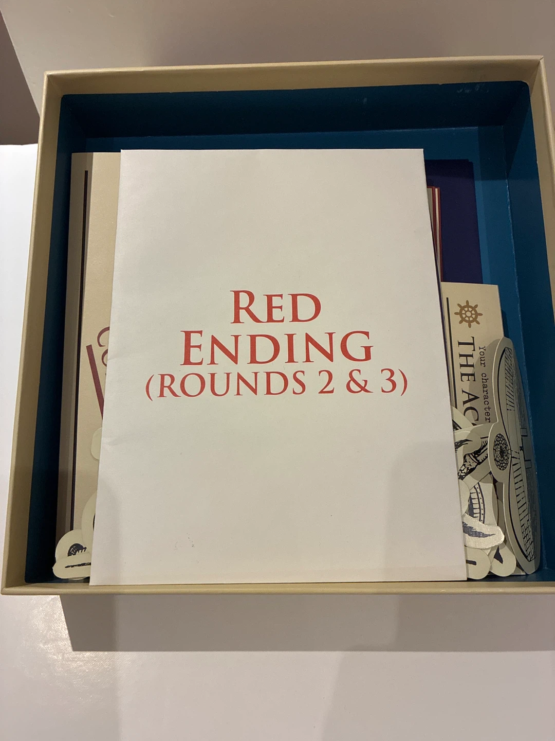 Selling a Murder Mystery board game! It's a game with 3 alternative endings, perfect for 5-13 players, and recommended for ages 16+! It includes the Red Ending (Rounds 2 & 3).