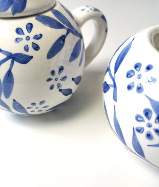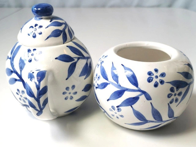 Creamer and Sugar Bowl Hand Painted Botanical Blue