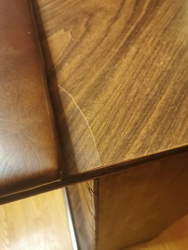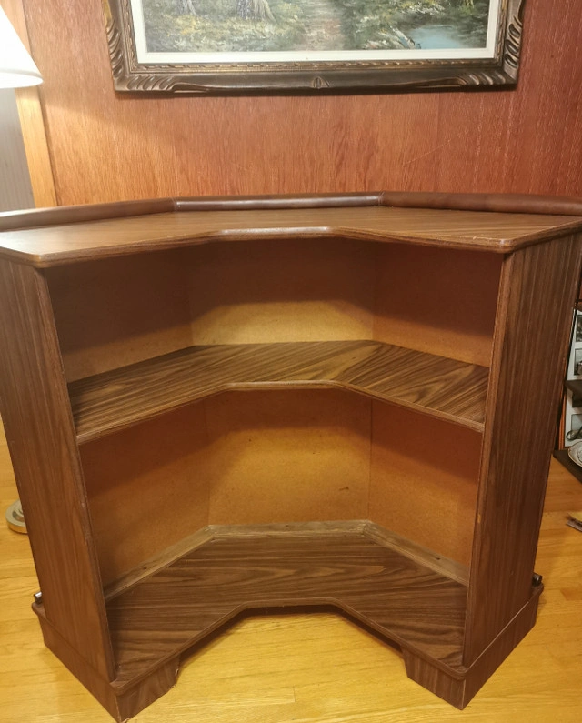 The bar has a retro vibe, it is from the 1960s. The padded front panelling in a grid pattern adds a vintage lounge or home entertainment feel. Great in the basement or for backyard entertaining. The dark brown colour contributes to a warm, classic aesthetic.