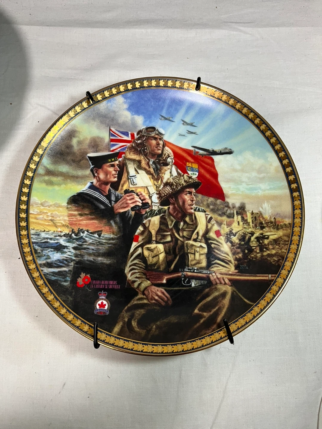Selling a set of collectible decorative plates! There's a Royal Canadian Navy plate, and a Star Trek: The Next Generation plate, along with others featuring aircraft and military scenes. They would make a great addition to any collection!