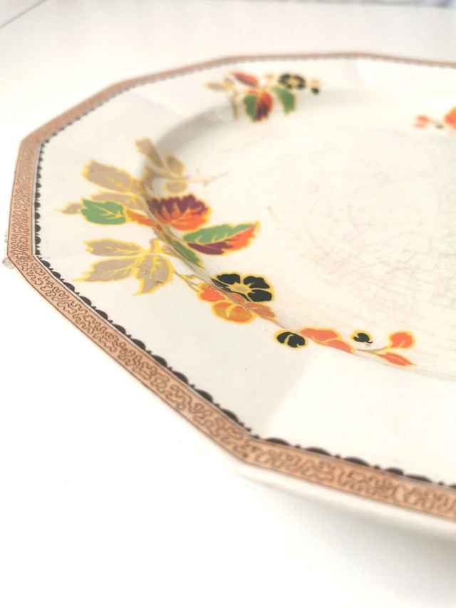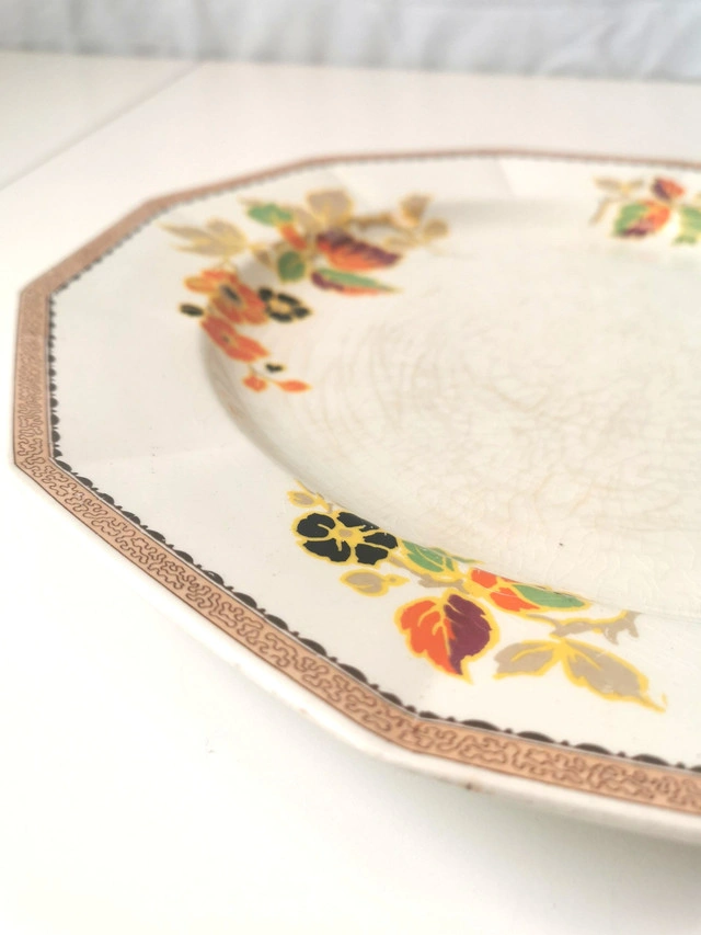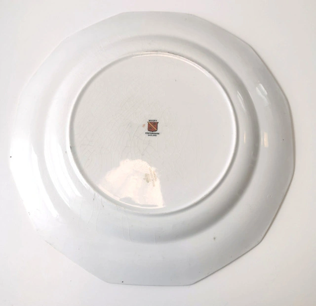 Large Vintage Plate made in Staffordshire England with Botanical Theme. Likely from the 1950s some crazing on surface on underside small chips please reference photos. Includes plate display stand.