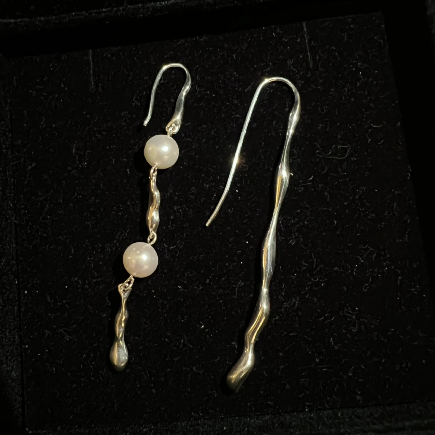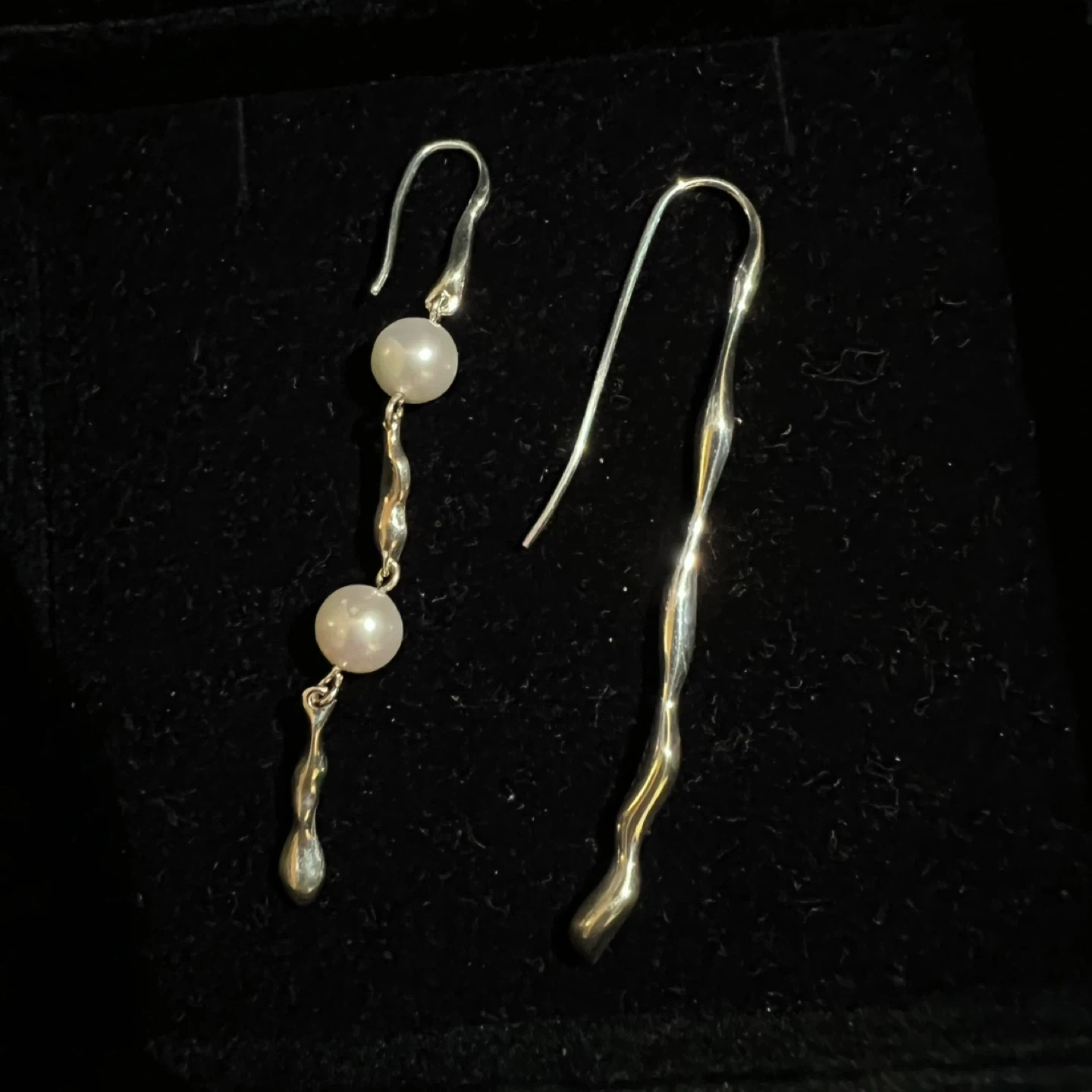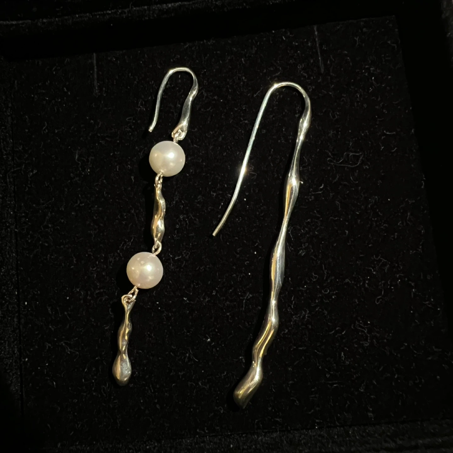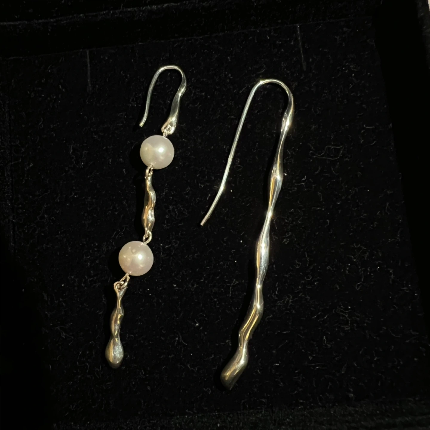 Selling a Brand new, never worn 925 silver dangle earrings featuring natural pearls and a unique organic design.I bought them from a Japanese designer jewelry boutique for $179.
