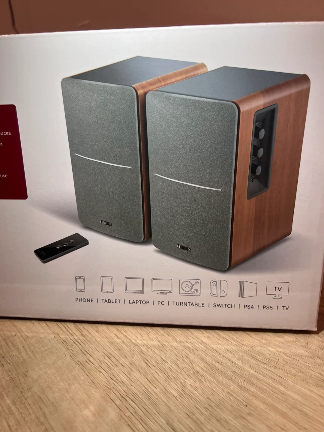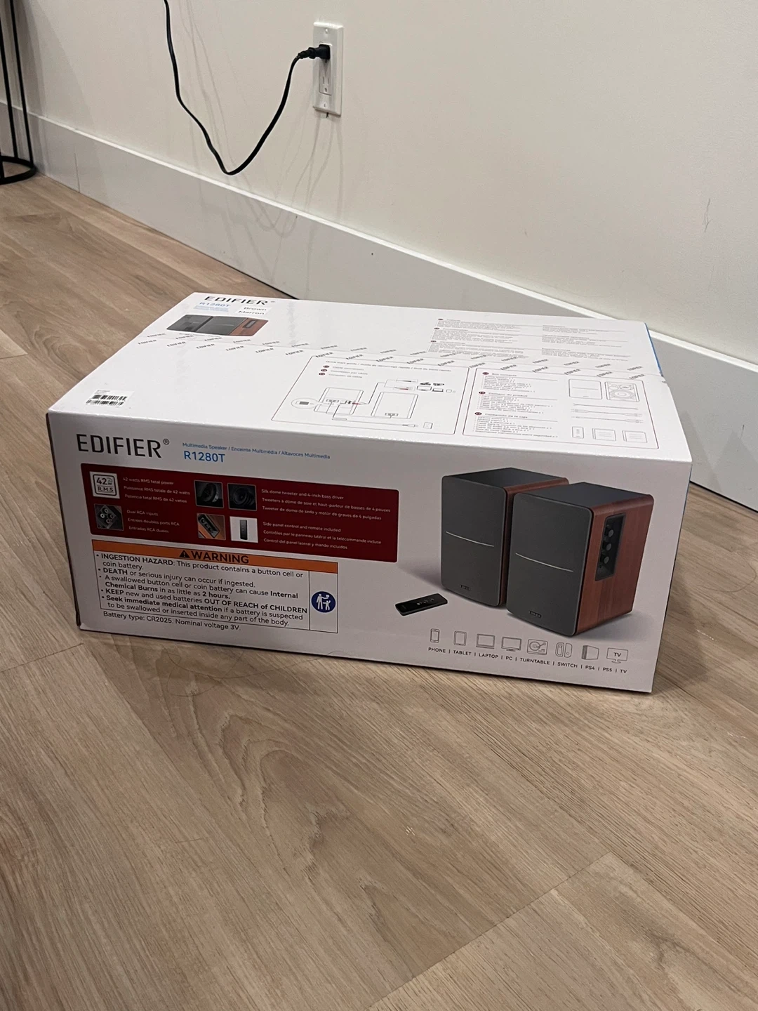 Selling unopened new Edifier R1280T powered bookshelf speaker set - classic 2.0 stereo system with rich sound and elegant wooden design. ๐Ÿ”Š 42W RMS total power - clear, balanced audio for any setup ๐ŸŽฎ Includes remote control ๐Ÿ’ป Works with phones, laptops, PCs, TVs, and turntables ๐Ÿ“ฆ Brand new in box, never opened ๐Ÿ’ฐ Originally bought for $192 (with tax) - selling for $115