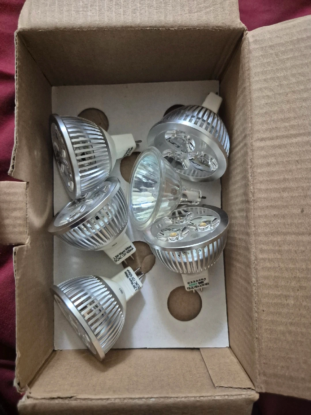 10Selling a pack of five LED warm white light bulbs. They are 3.2W and operate at DC/AC 12V 420mA. Perfect for creating a cozy atmosphere in your home!