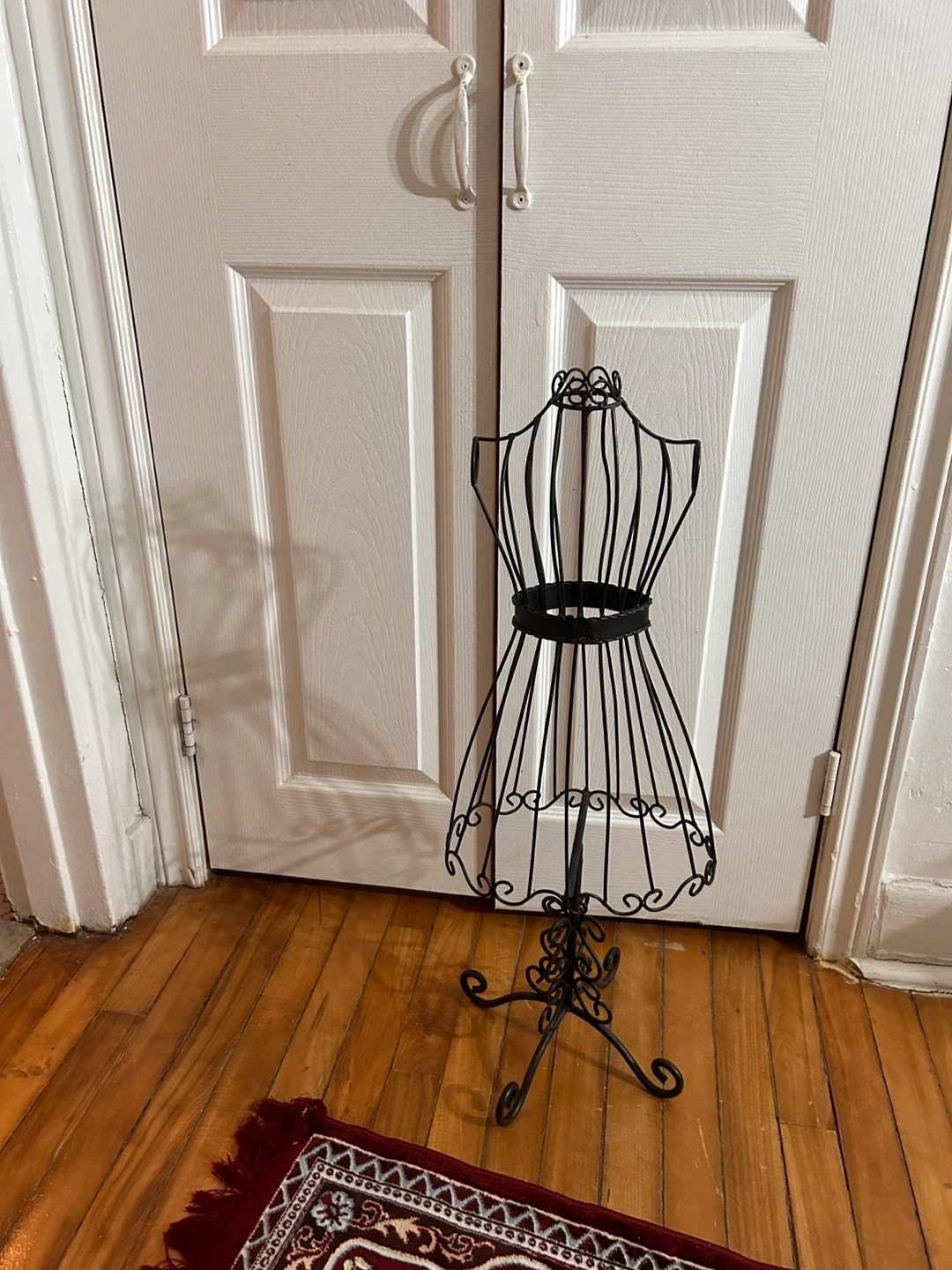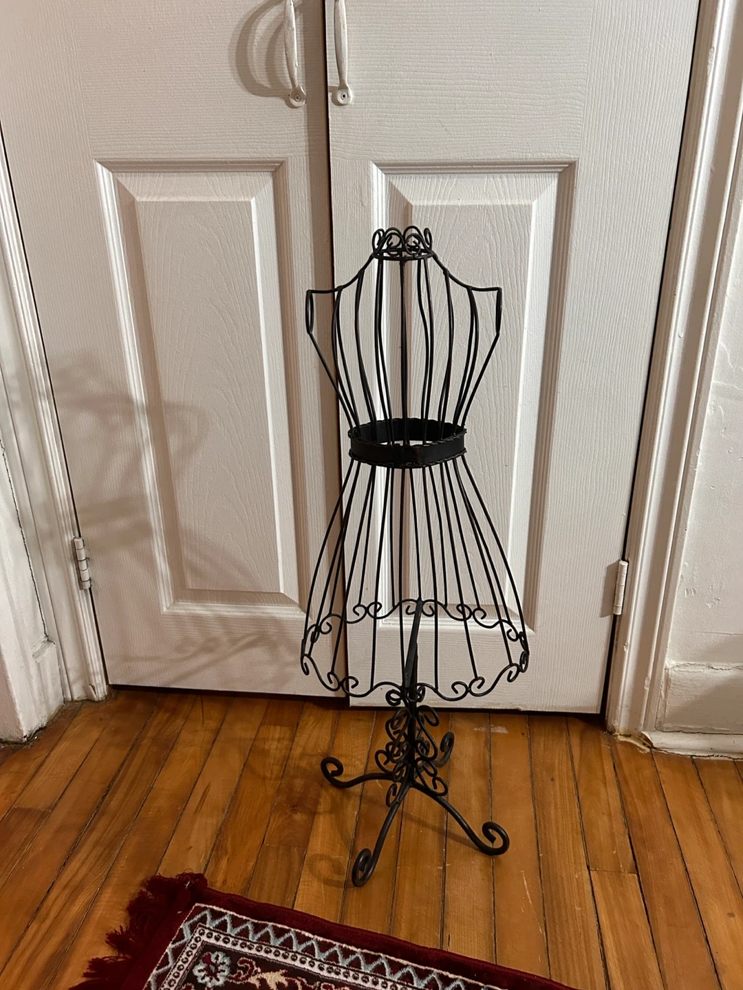 Selling a decorative metal dress form mannequin. It's in great shape and adds a unique touch to any room. Perfect for displaying clothing or as a standalone art piece!