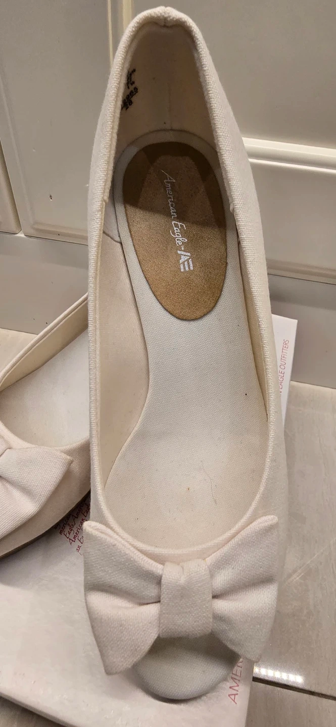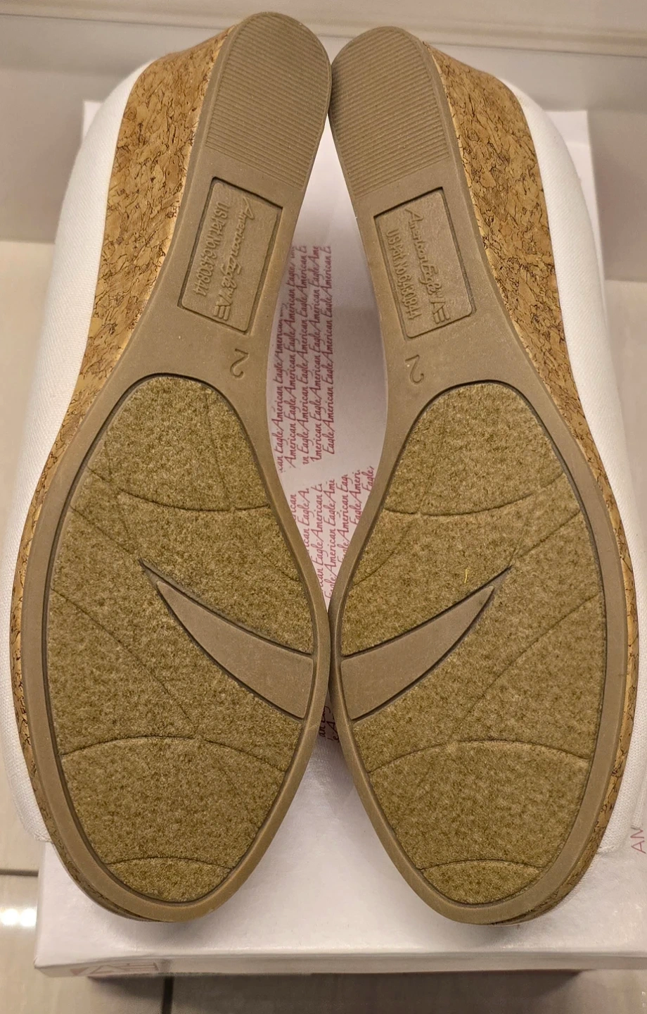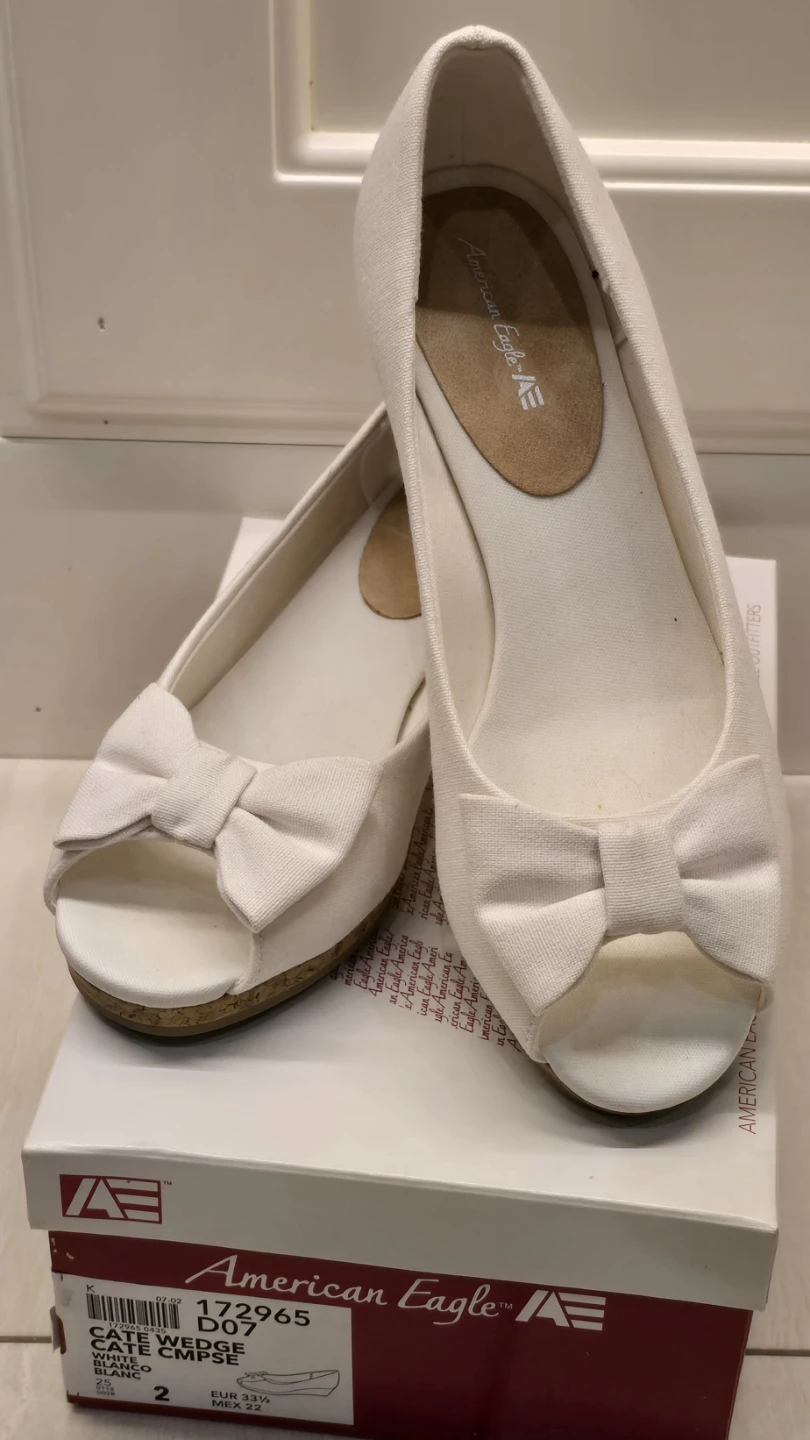 These American Eagle white wedge shoes are brand new, never worn and come with the original box! They're a size 2 youth. Perfect for adding a little height with a comfy wedge heel!
