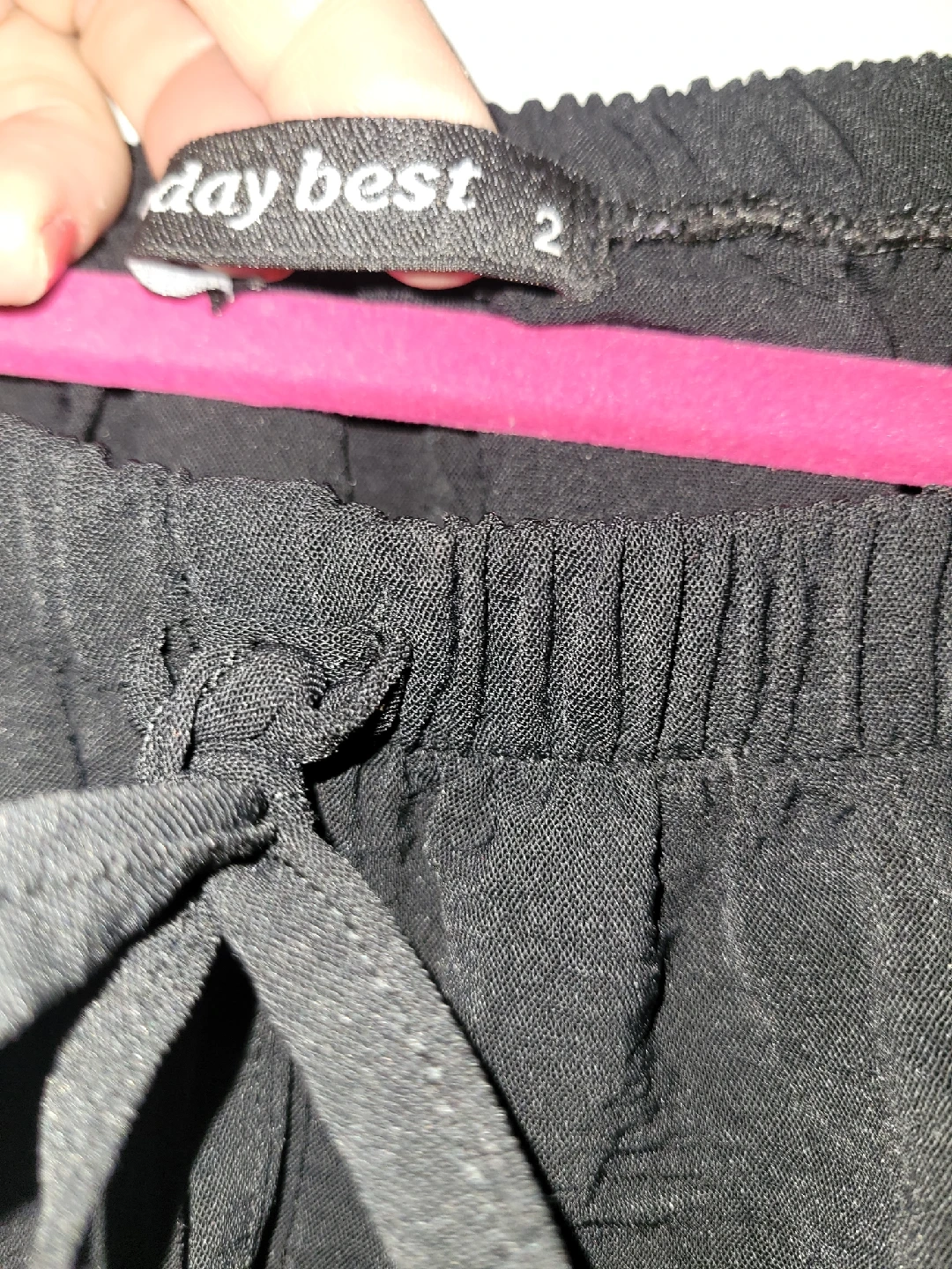 This is a Sunday Best black skirt, size 2. The skirt is in good condition and has a front slit.