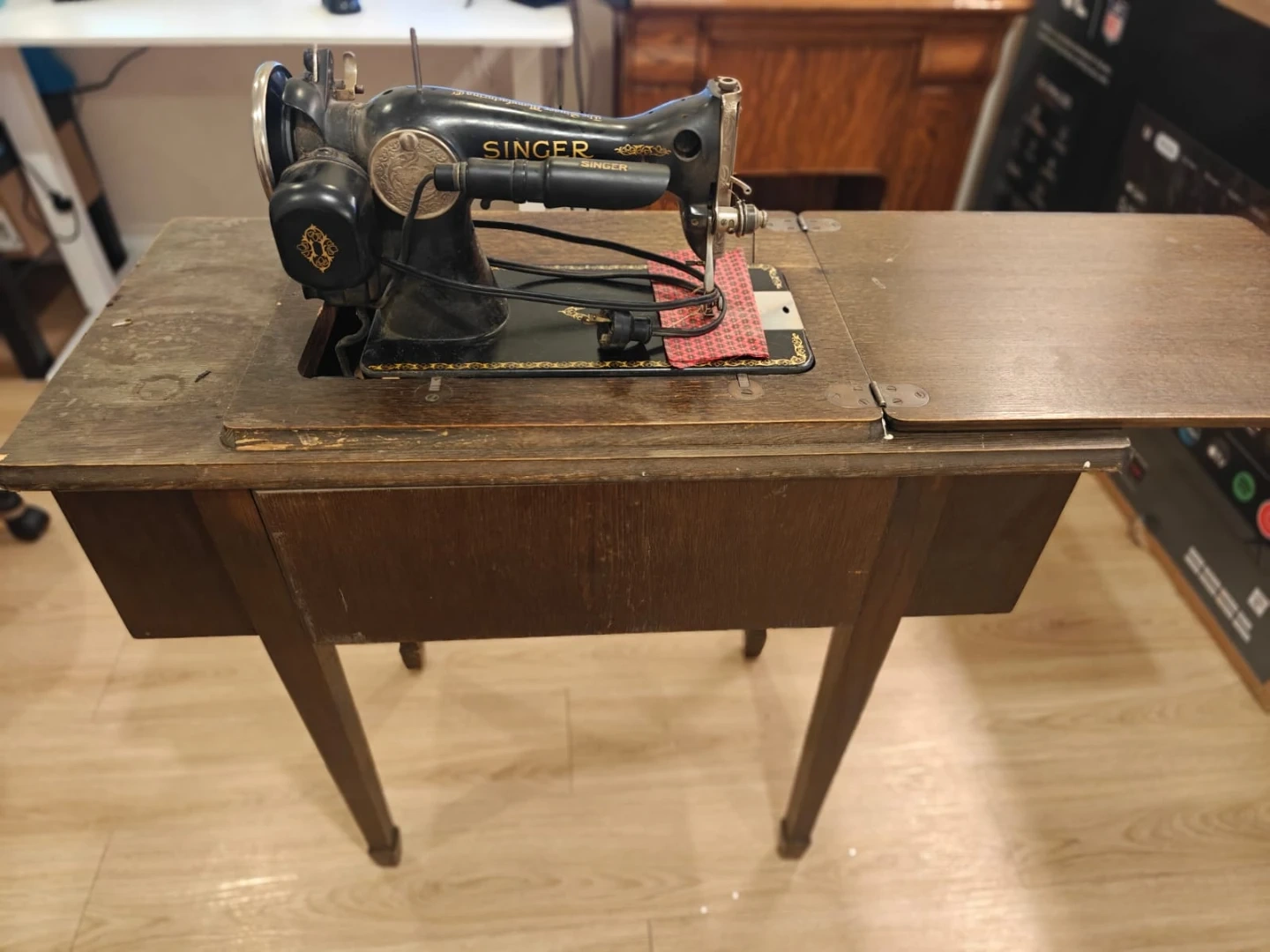 Selling a vintage Singer sewing machine with its original cabinet. It's a beautiful piece of history and would be a great addition to any collection or for someone who loves to sew. The machine shows some signs of wear consistent with its age, but it is still in good condition. The cabinet provides ample storage and a sturdy base for the machine.need service. Dont know how it work.