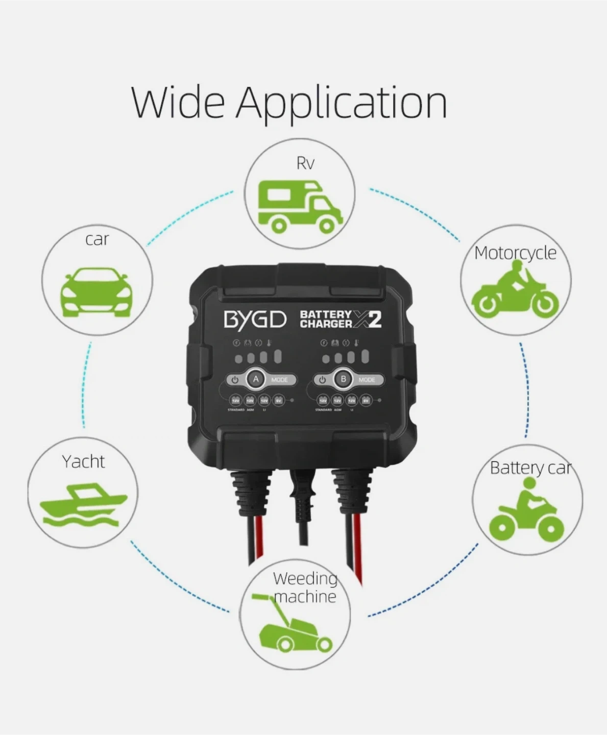 Selling a BYGD Battery Charger F2000X2. Looks like new! Comes with the box and user manual, plus all the accessories you see in the pictures. Great for cars, RVs, motorcycles, yachts and more!