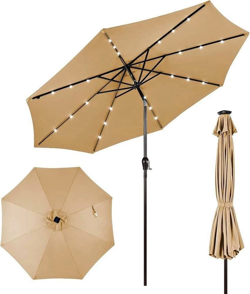 HOMSHADE 9FT Beige Patio Umbrella w/ Solar LED Lights