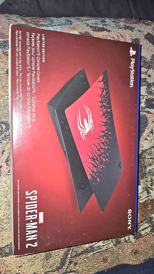 For sale: Brand new, sealed PS5 Disc Edition Spider-Man console cover set. This is the official limited edition faceplate set, designed specifically for the PS5 Disc Edition console.