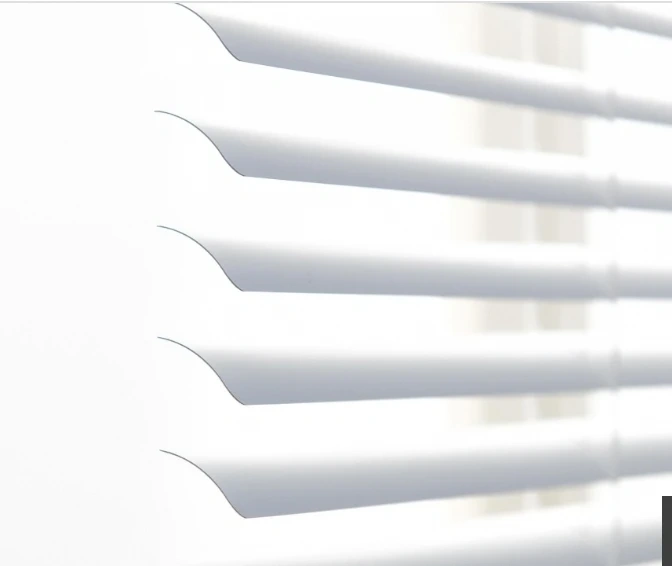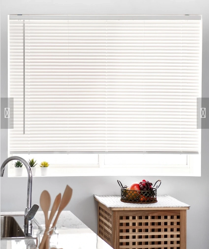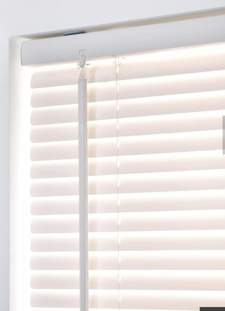 Vinyl slats with sturdy vinyl head rail. The durable construction resists warping, fading and sagging