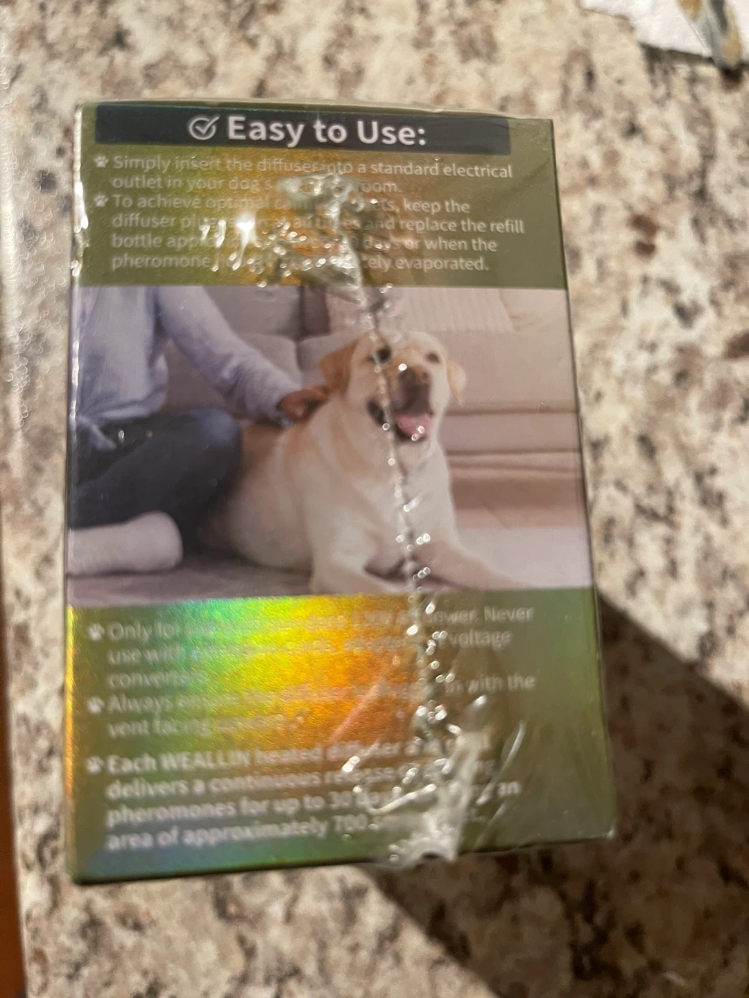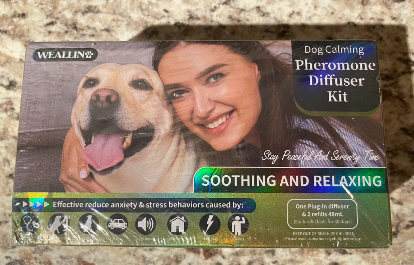 Selling a brand new WEALLIN Dog Calming Pheromone Diffuser Kit! It's designed to reduce stress and anxiety in dogs, mimicking natural calming pheromones. The diffuser helps with unwanted behaviors like destructive chewing and trembling, creating a peaceful environment for your furry friend. Each refill lasts up to 30 days and covers up to 700 sq ft, making it easy to use in any room of your home.