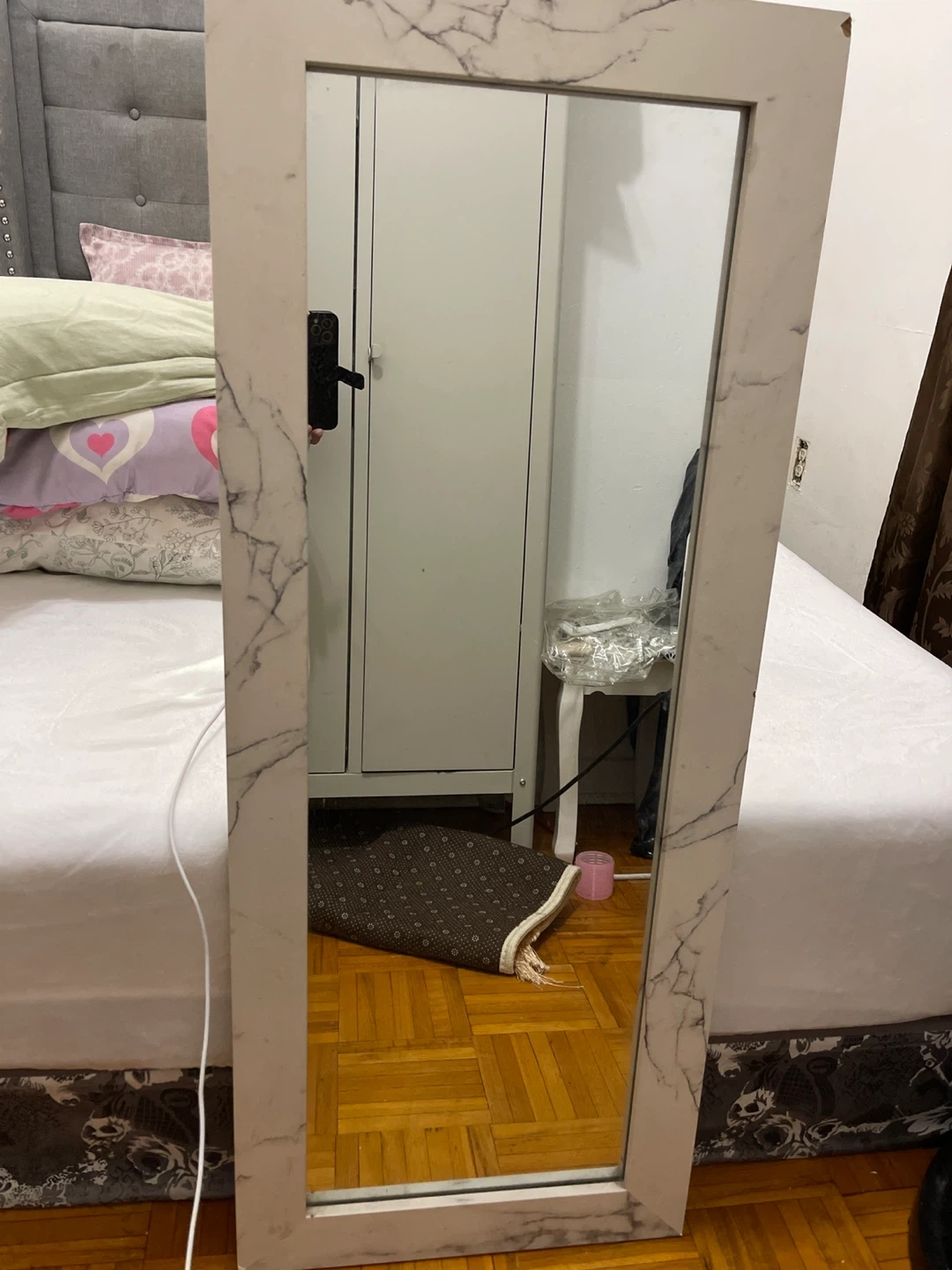 Selling a full-length mirror featuring a stylish marble-effect frame. It's perfect for adding a touch of elegance to any room. There's a small chip on the top edge of the frame, as shown in the photos, but otherwise it's in good condition and ready to find a new home!