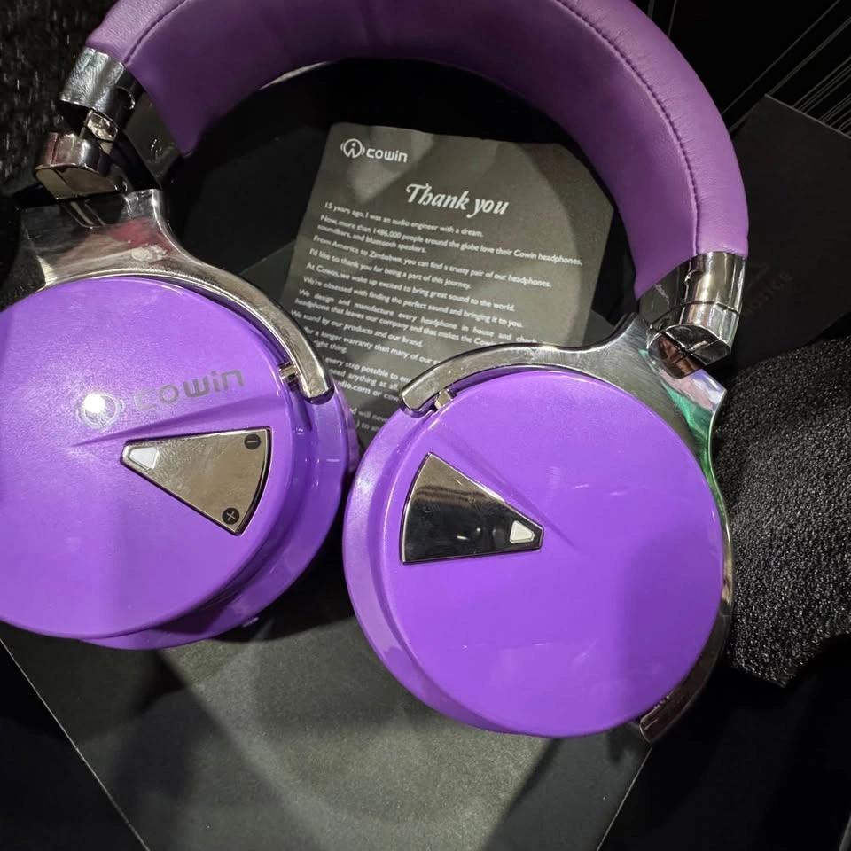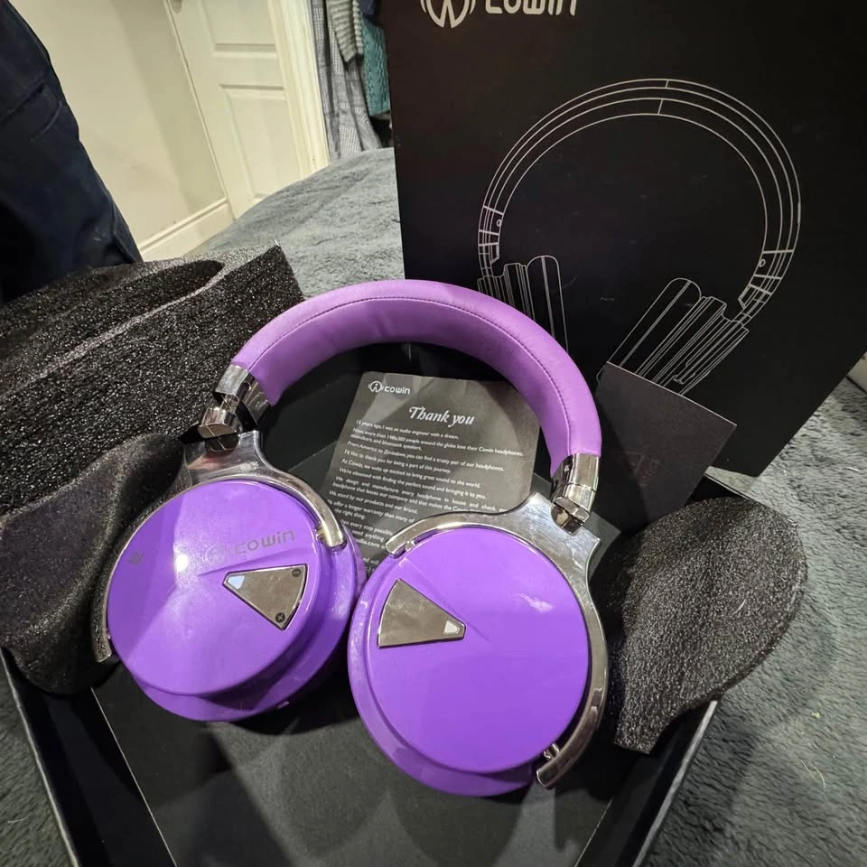 40Add some color to your sound! These stylish Cowin Bluetooth headphones deliver crisp audio and deep bass, with comfortable over-ear padding for long listening sessions. β Great sound quality β Active noise cancelling β Wireless Bluetooth connection β Built-in mic for calls β Long battery life β Comes in original box with packaging and thank-you card Condition: Brand New Color: Purple Brand: Cowin