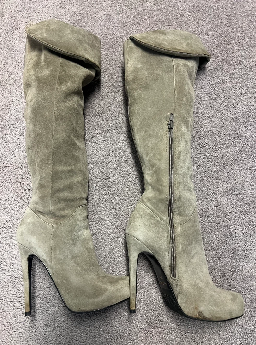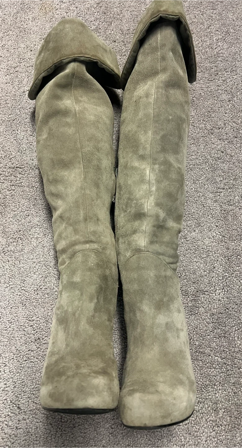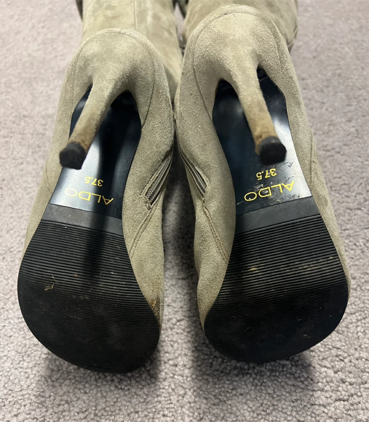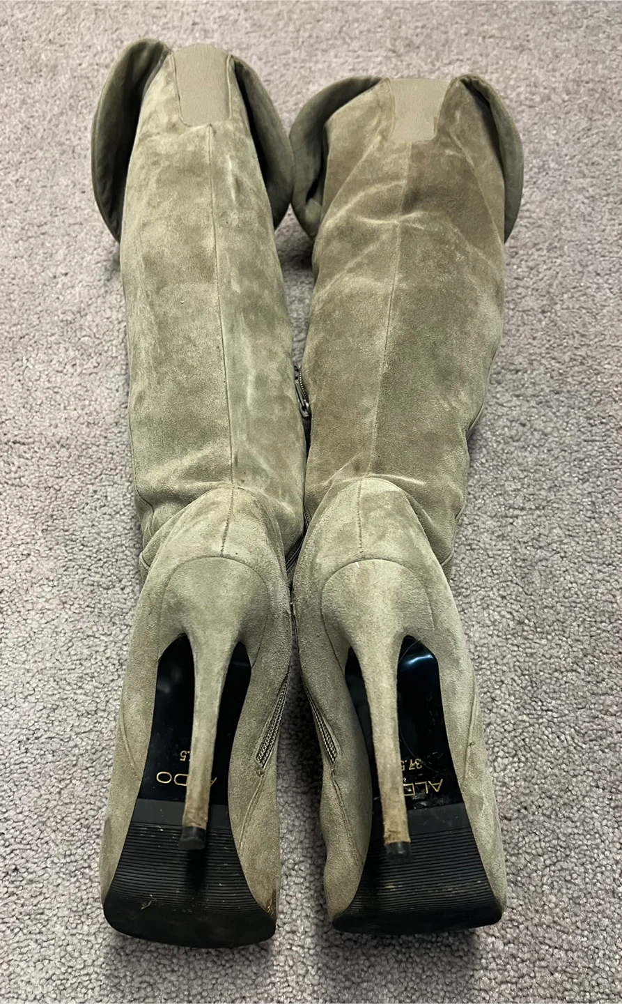 65Selling a pair of ALDO over-the-knee boots in a stylish suede material. They are a size 7.5 and feature a heel. Perfect for adding a touch of elegance to your outfit!