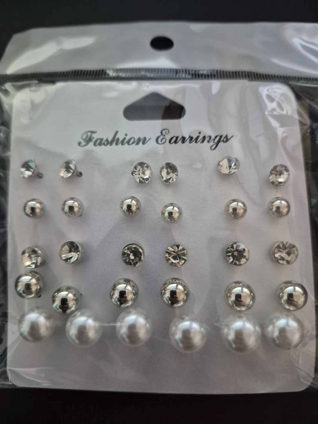 Selling a brand new set of fashion earrings! This set includes a variety of styles, including studs with rhinestones and pearl-like earrings. Perfect for adding a touch of sparkle to any outfit