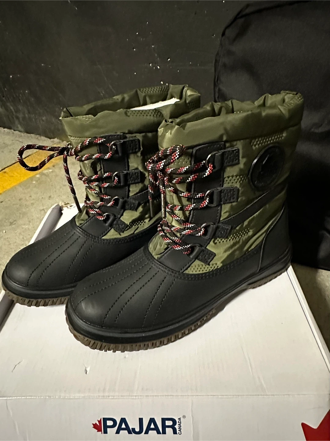 $60-Brand new womens size 9 Pajar winter boots ,waterproof boots are perfect for the Canadian winter. original box, black and olive color Brand, nylon and leather