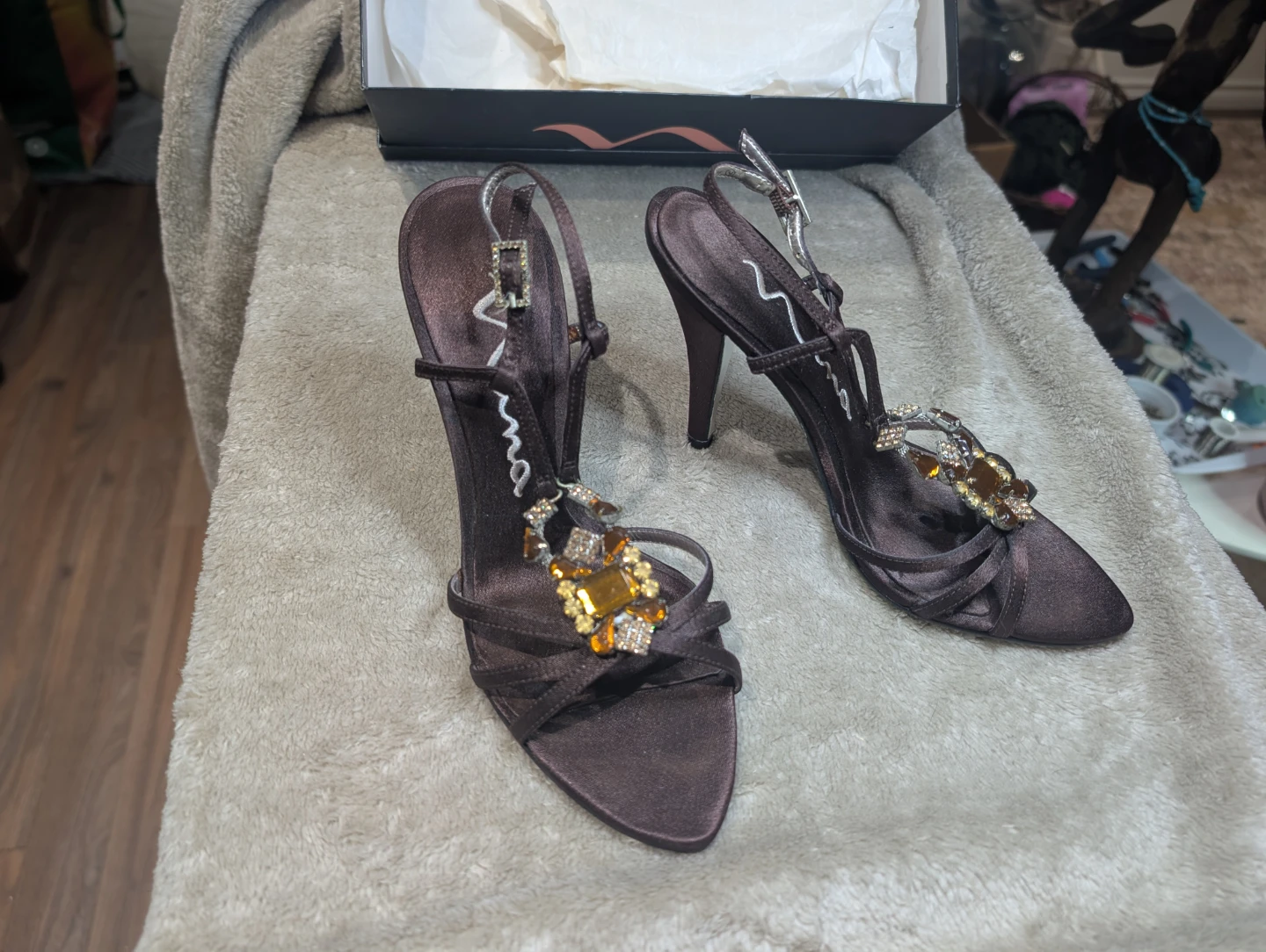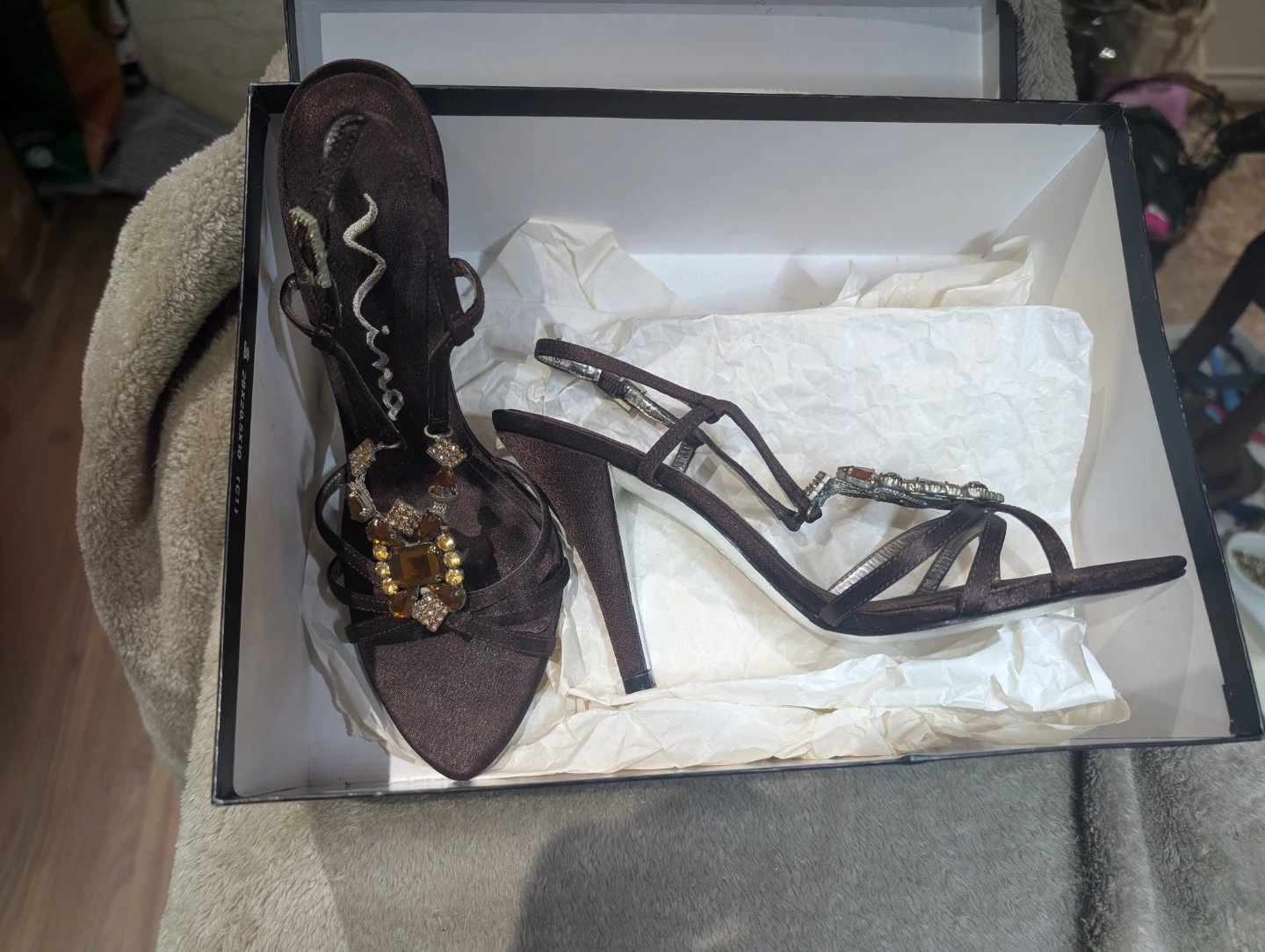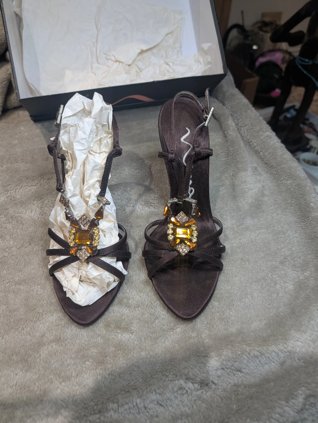 Still in their original box, I bought these 20 years ago and wore them once. I kept them "... until one day, when I have the perfect outfit to wear them with and they'll be a *Heck Yes!*.