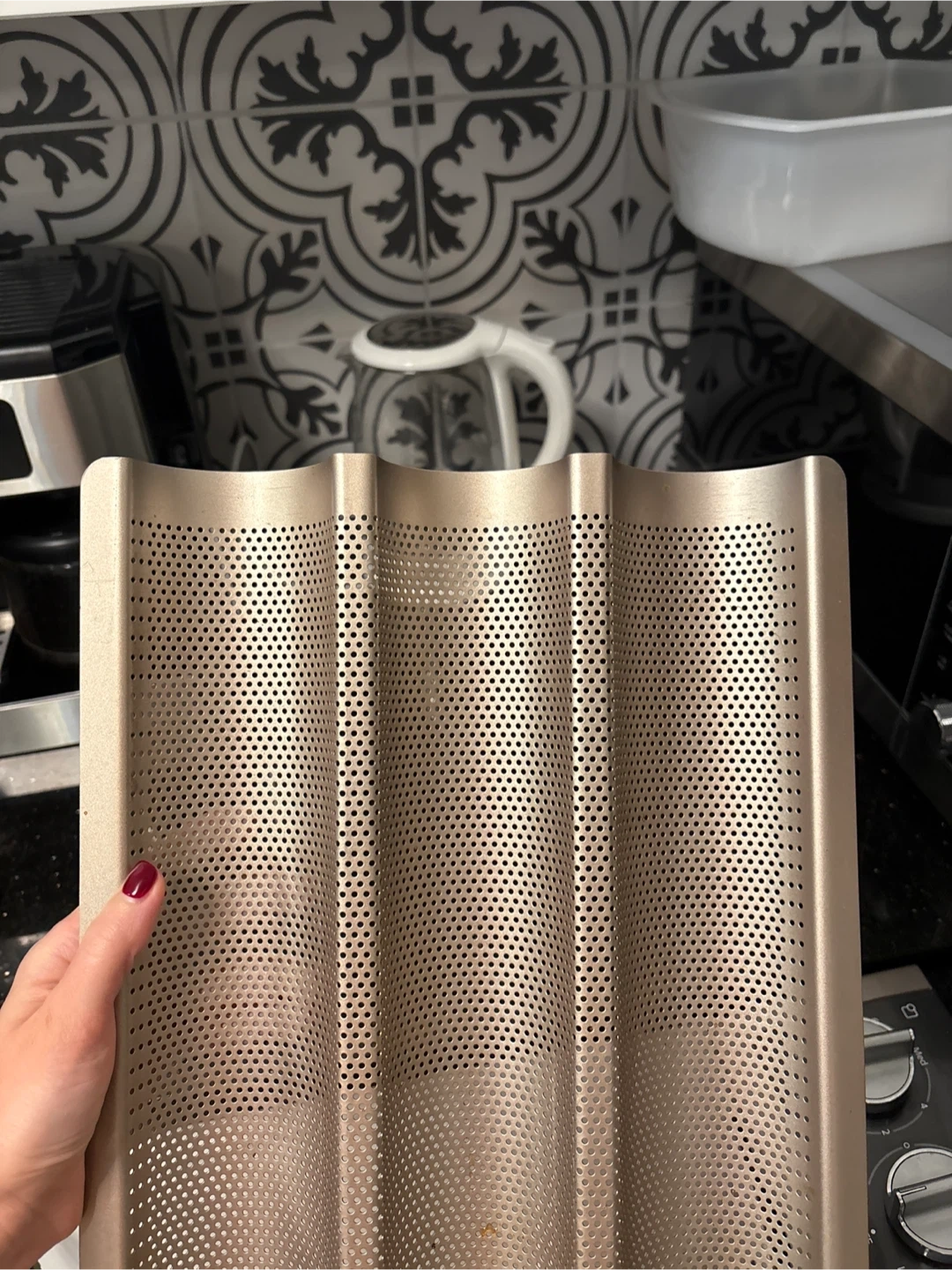Selling a baguette baking pan! It's perfect for baking fresh, crusty baguettes at home. This pan helps you achieve that classic baguette shape and texture with ease. A must-have for any home baker!