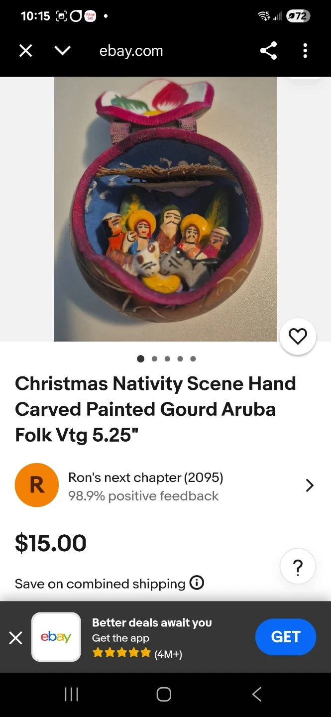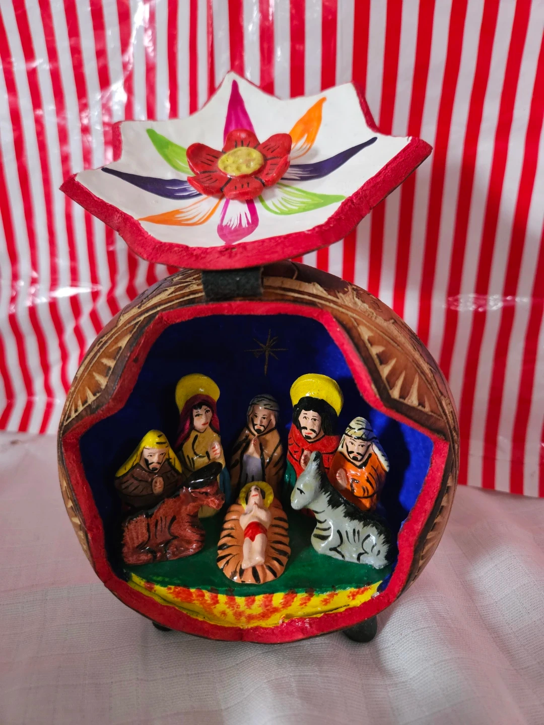Selling a hand-carved gourd featuring a folk art nativity scene. It's a unique piece with intricate details. Perfect for Christmas decoration or as a collectible item!