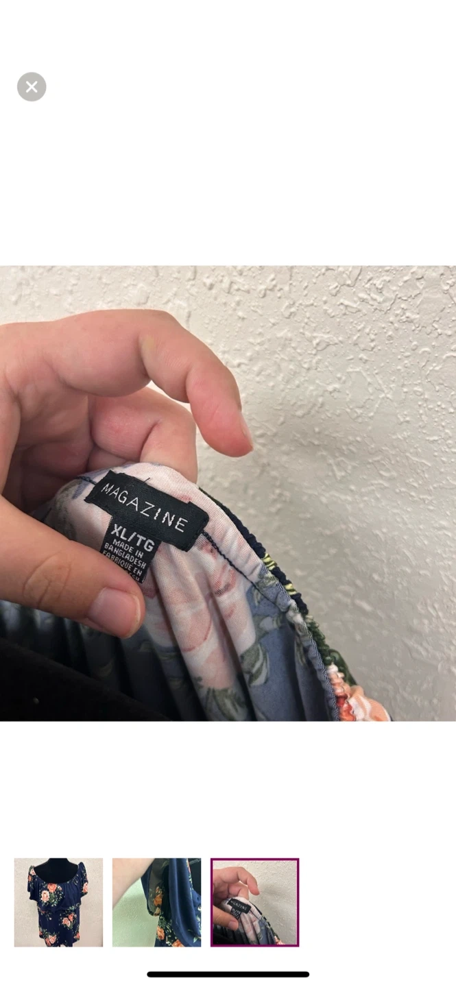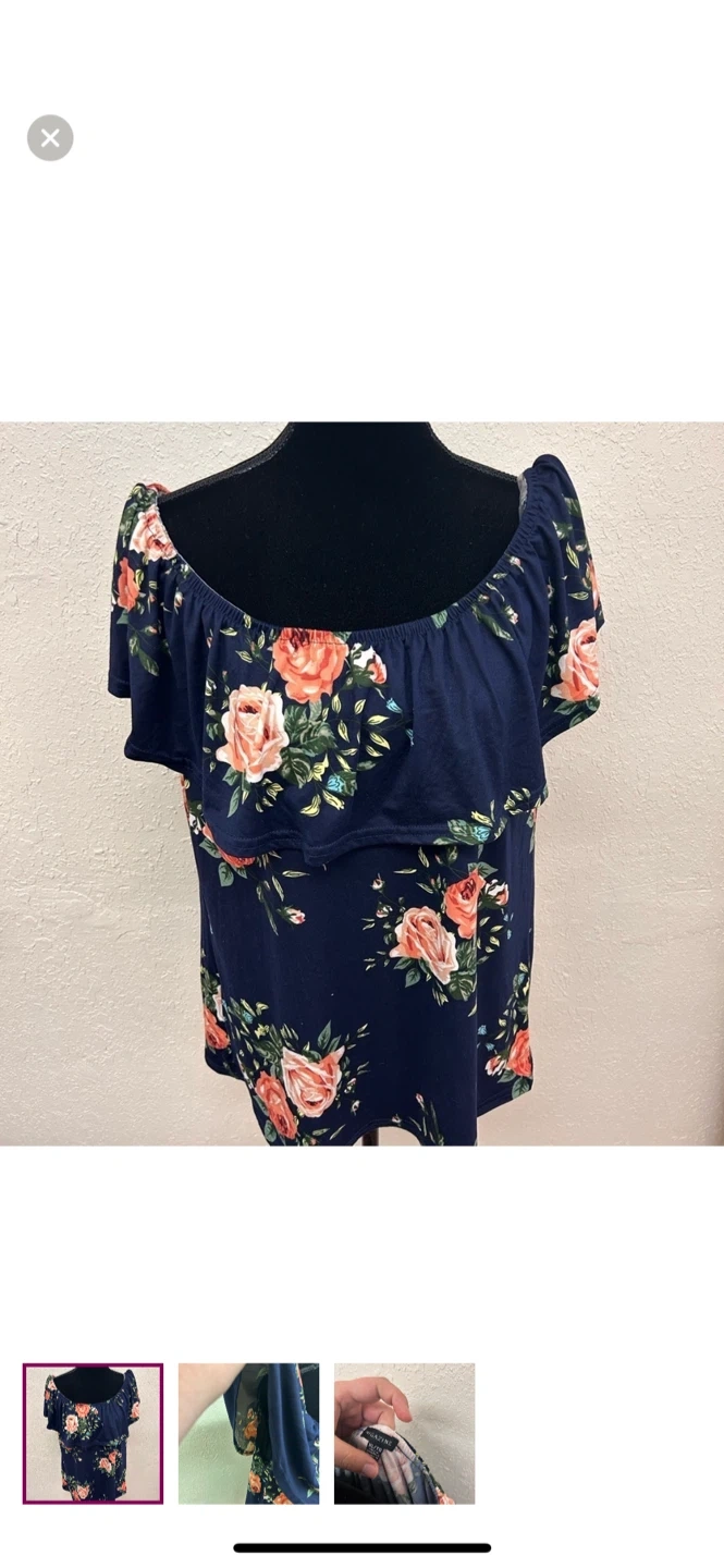 12Magazine brand. Off the shoulder ruffle blouse. Blue floral. Size xl. Brand new condition Pit to pit 20” $5 Pickup Kincardine area or Peterborough but I can arrange delivery in port Elgin, walkerton-Durham, wingham-listowel-kw/cambridge/guelph, goderich-bayfield, & Arthur-Orangeville-Newmarket-Lindsay AREAS.