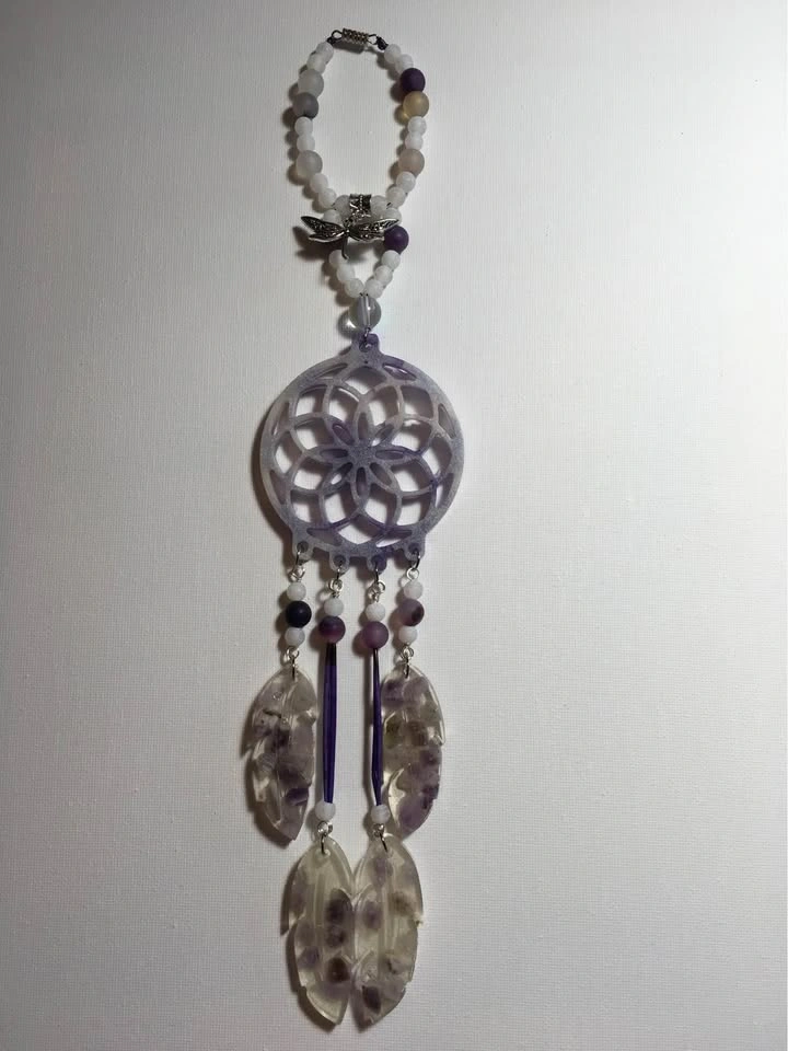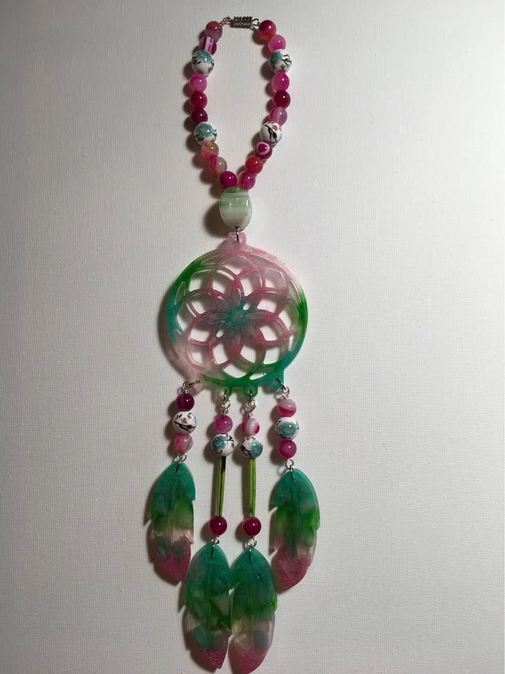 Resin dream catchers made with porcupine quills and semi precious stone beads. Each approximately 1 foot in length.