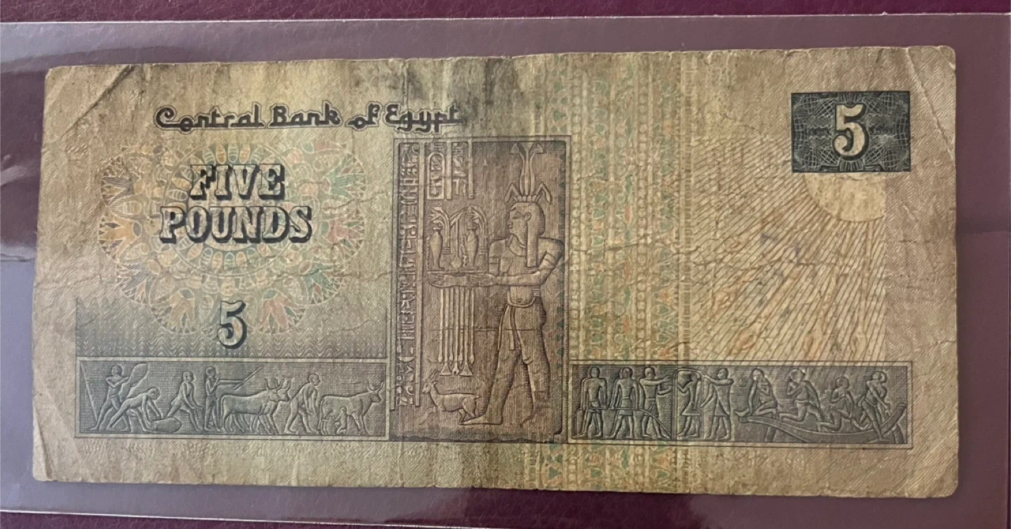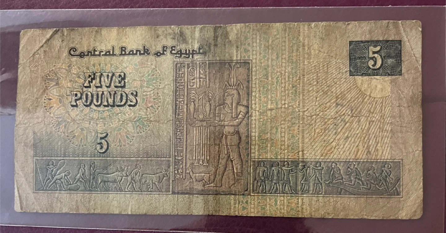 258Available only today Selling an Egyptian 5 pound note. Appears to be in used condition.