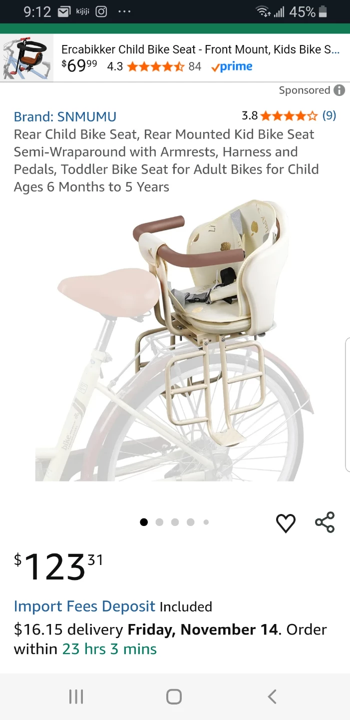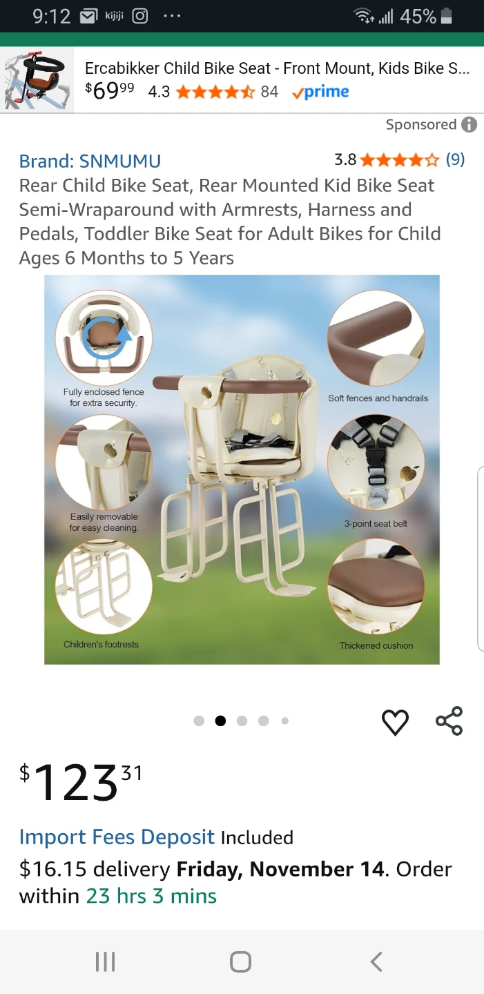 This children's bike seat with thickened and enlarged footrest is very strong load-bearing, so that the baby's feet have a place to put and sit more comfortably. This is the perfect rear facing bike seat for kids from 6 months to 6 years old