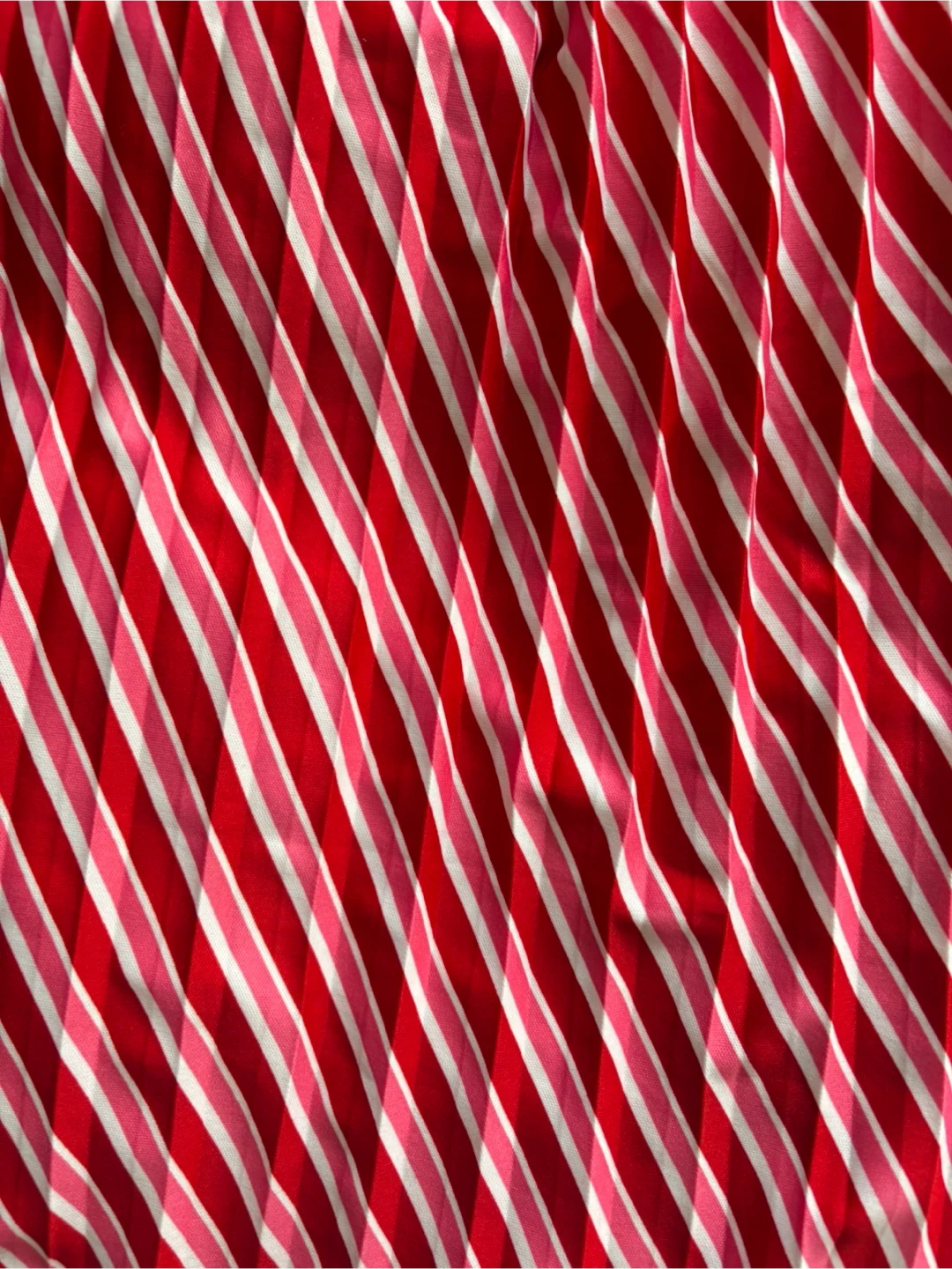 84Brand new Here's a fun and festive skirt from Janina! It features a red and white striped pattern and a comfortable elastic waistband. The size is EUR38- 42Perfect for adding a pop of colour to your wardrobe!