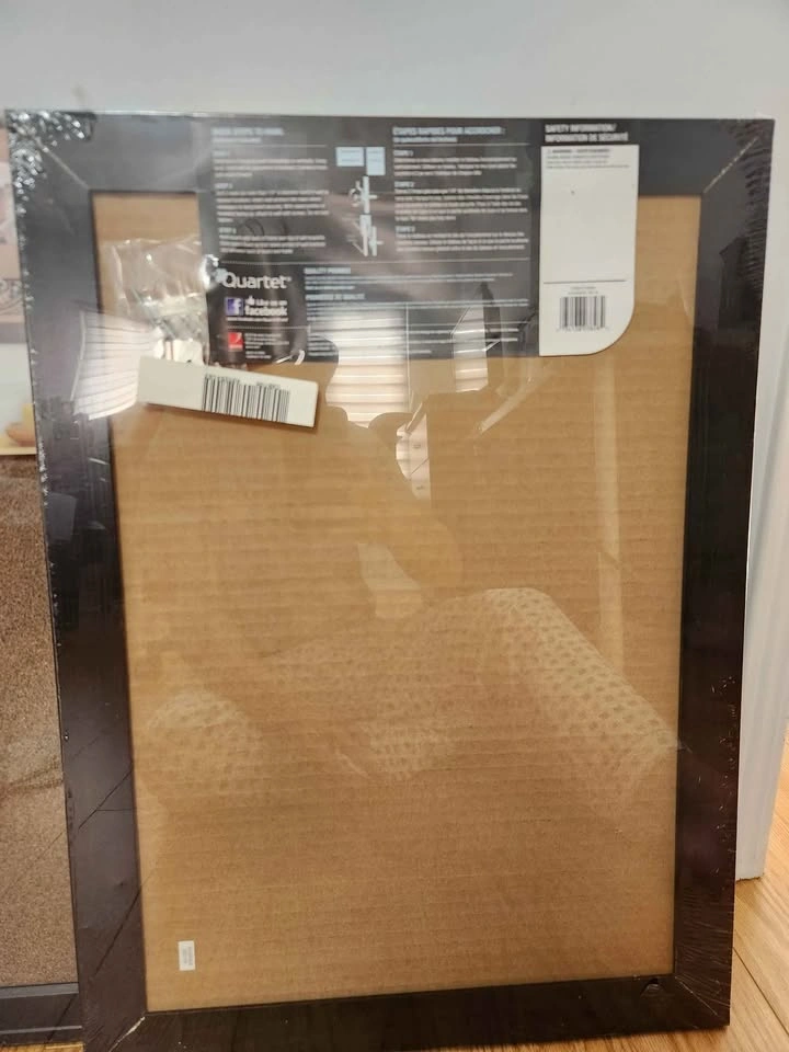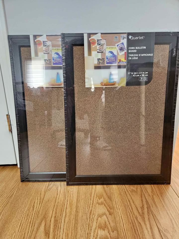 Brand new and sealed Quartet cork bulletin boards with black frames.