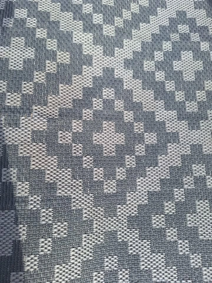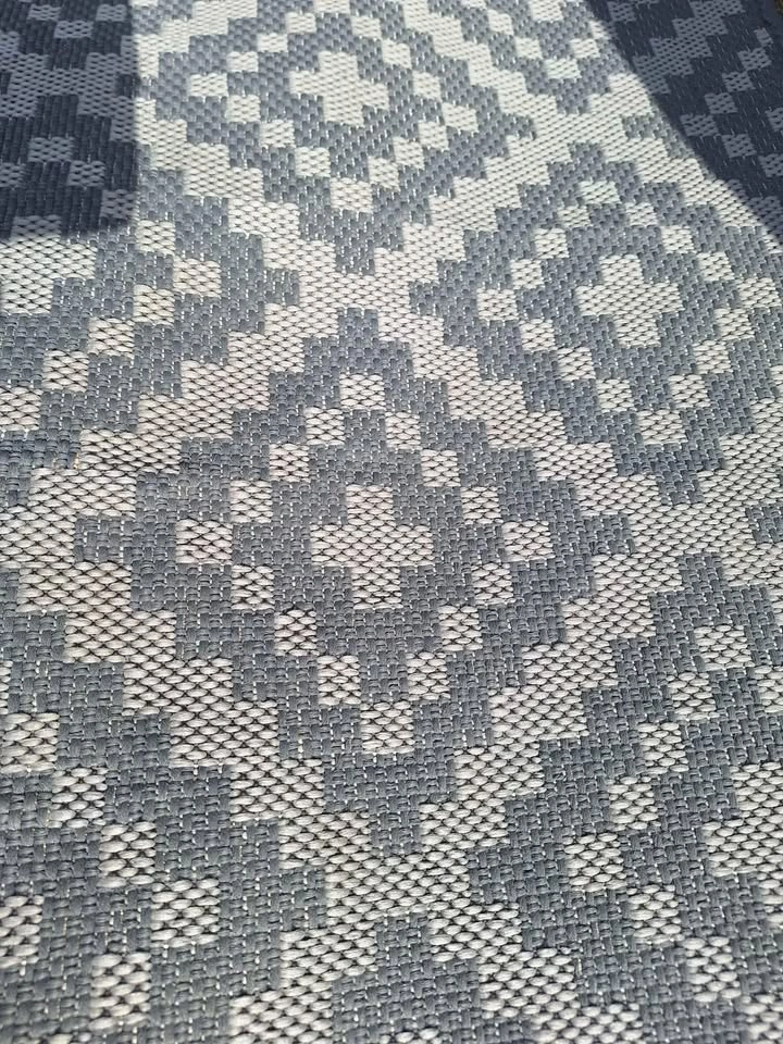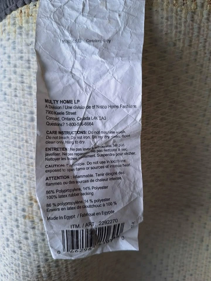 As is, one corner frayed edging, some cracks and breaking up on non-slip backing, otherwise good condition, top looks great, freshly washed
