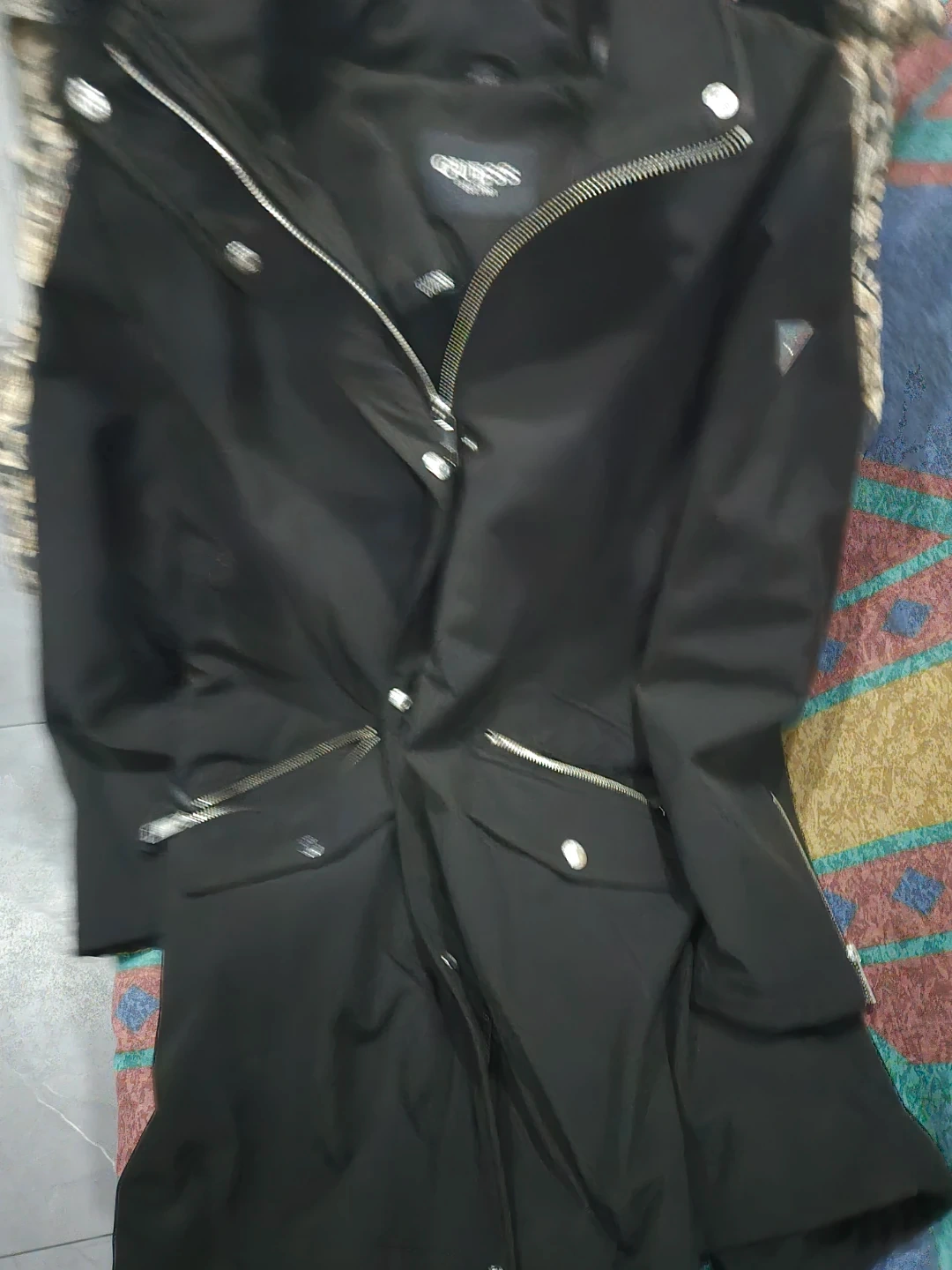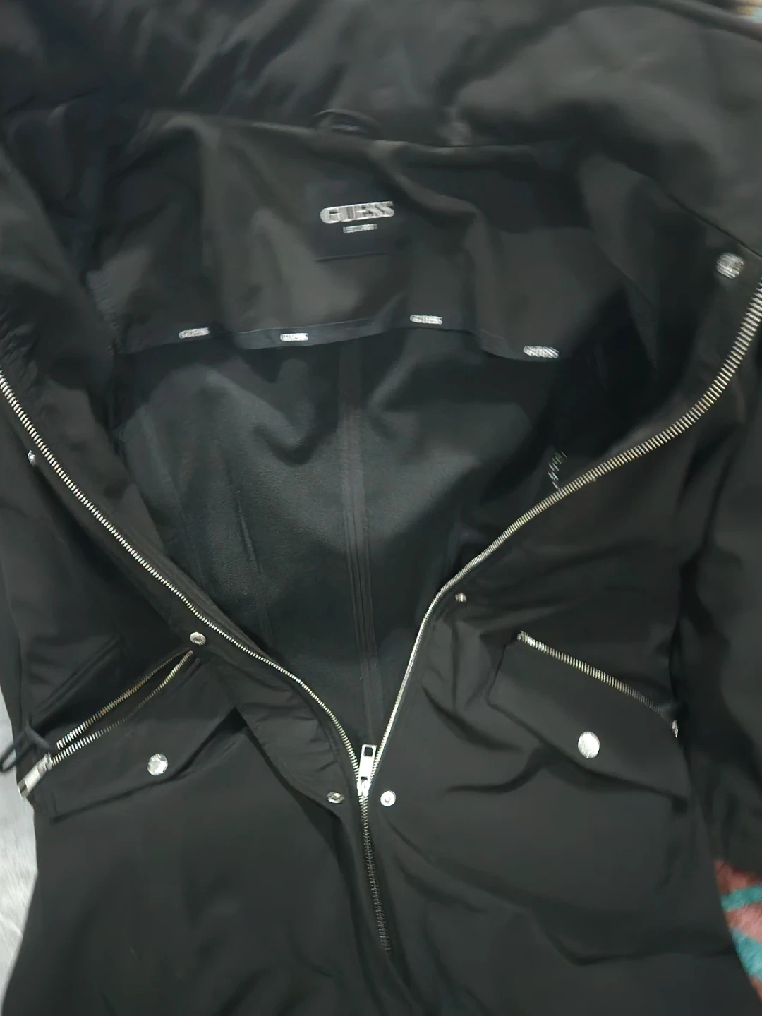 Here's a stylish black winter coat from Guess! It's in great condition only worn once (Practically new). Ready to keep you warm this winter. Features a sleek design with multiple pockets , faux fur trim on the detachable hood. Perfect for braving the Canadian weather! 1X fits like an XL