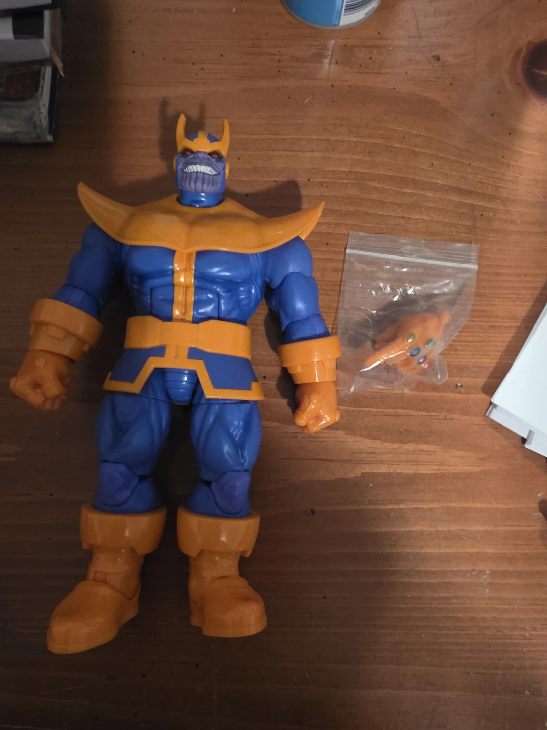 Selling a Marvel Legends Thanos action figure. It comes with the Infinity Gauntlet accessory in a separate bag. The figure is in great condition and ready for a new home!