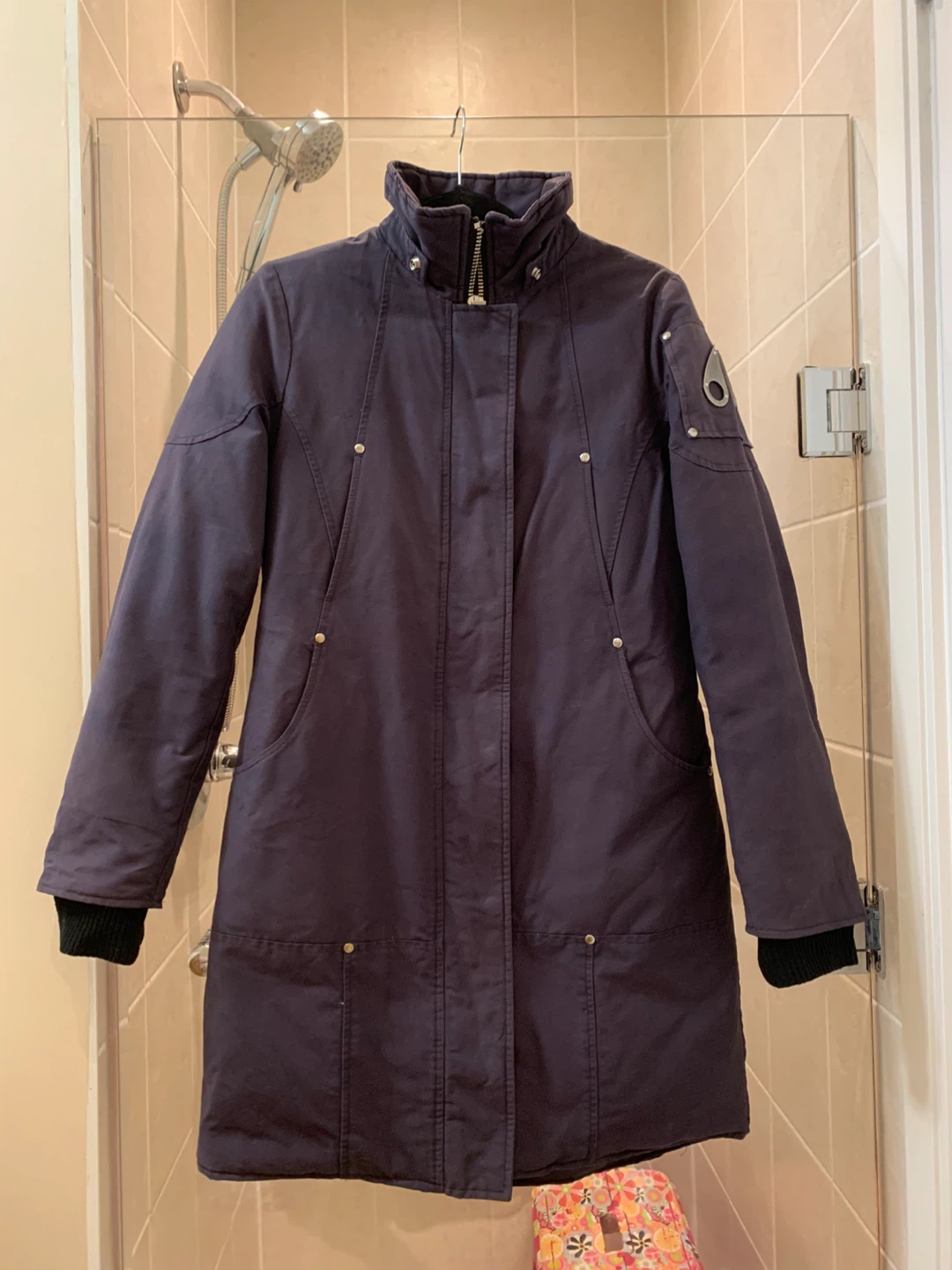 Here's a cozy down-filled coat from Moose Knuckles, perfect for those chilly Canadian days! It's in great shape and ready for a new home.