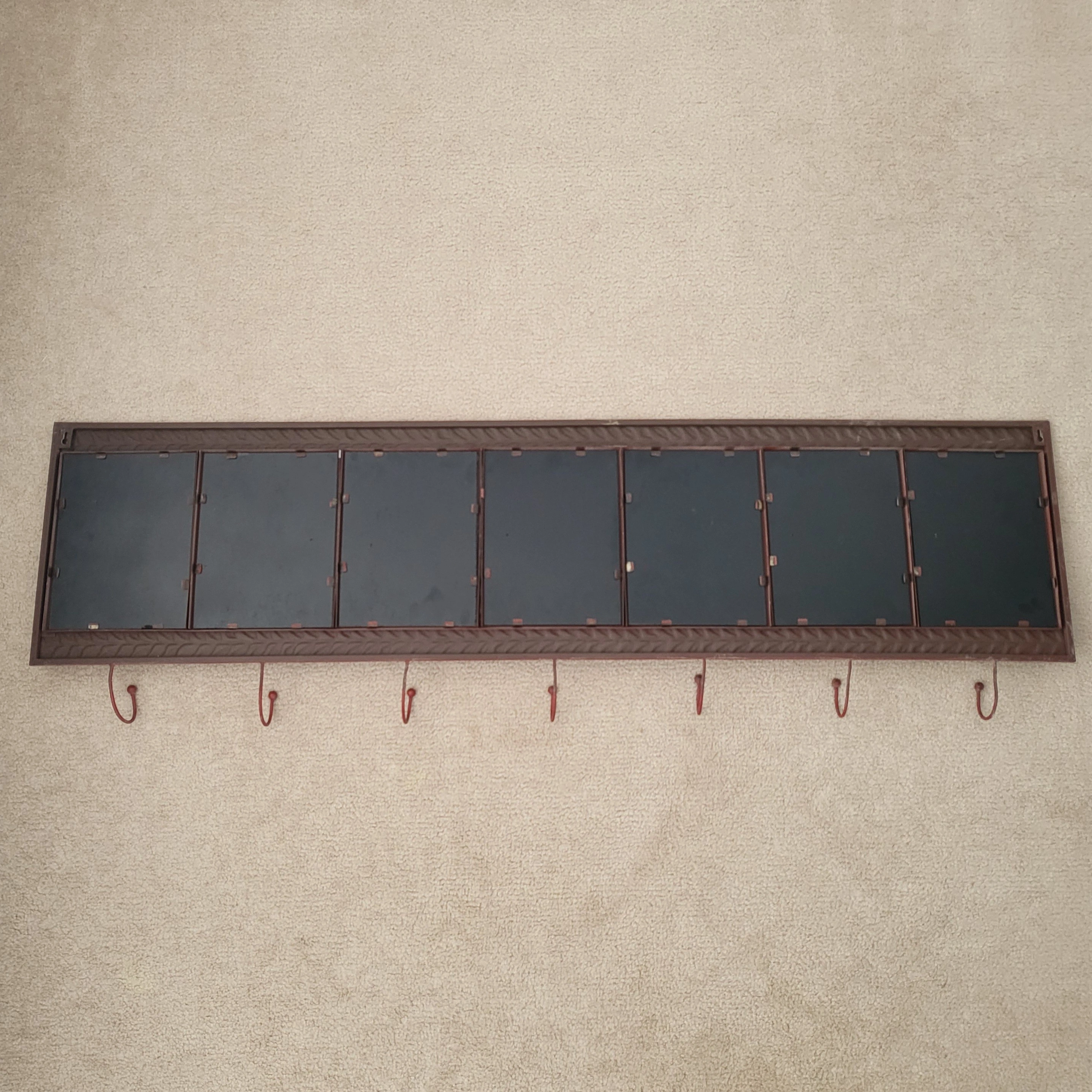 94Looking to decorate your entryway, kitchen, mudroom or even bedroom? Look no further! -Chalk board calendar -Gently used and well cared for -Red distressed metal finish -7 hooks for hats, keys, clothes, etc -Durable and sturdy -12"H x 49"W x 0.5"D Ready for a quick, hassle-free pickup near Audley Rd and Bayly St!π Thanks and happy holidays, Noah