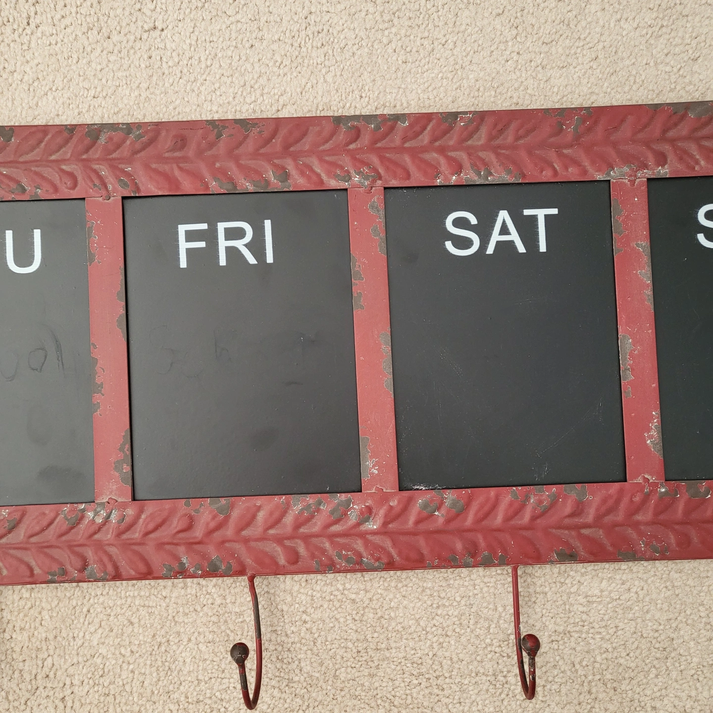 Pristine! Chalk Board 7-Day Calendar+Hooks - Quick Pickup!π