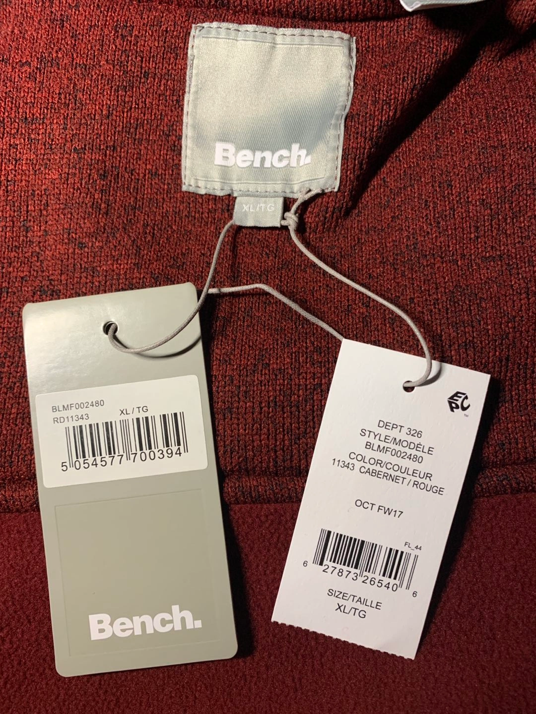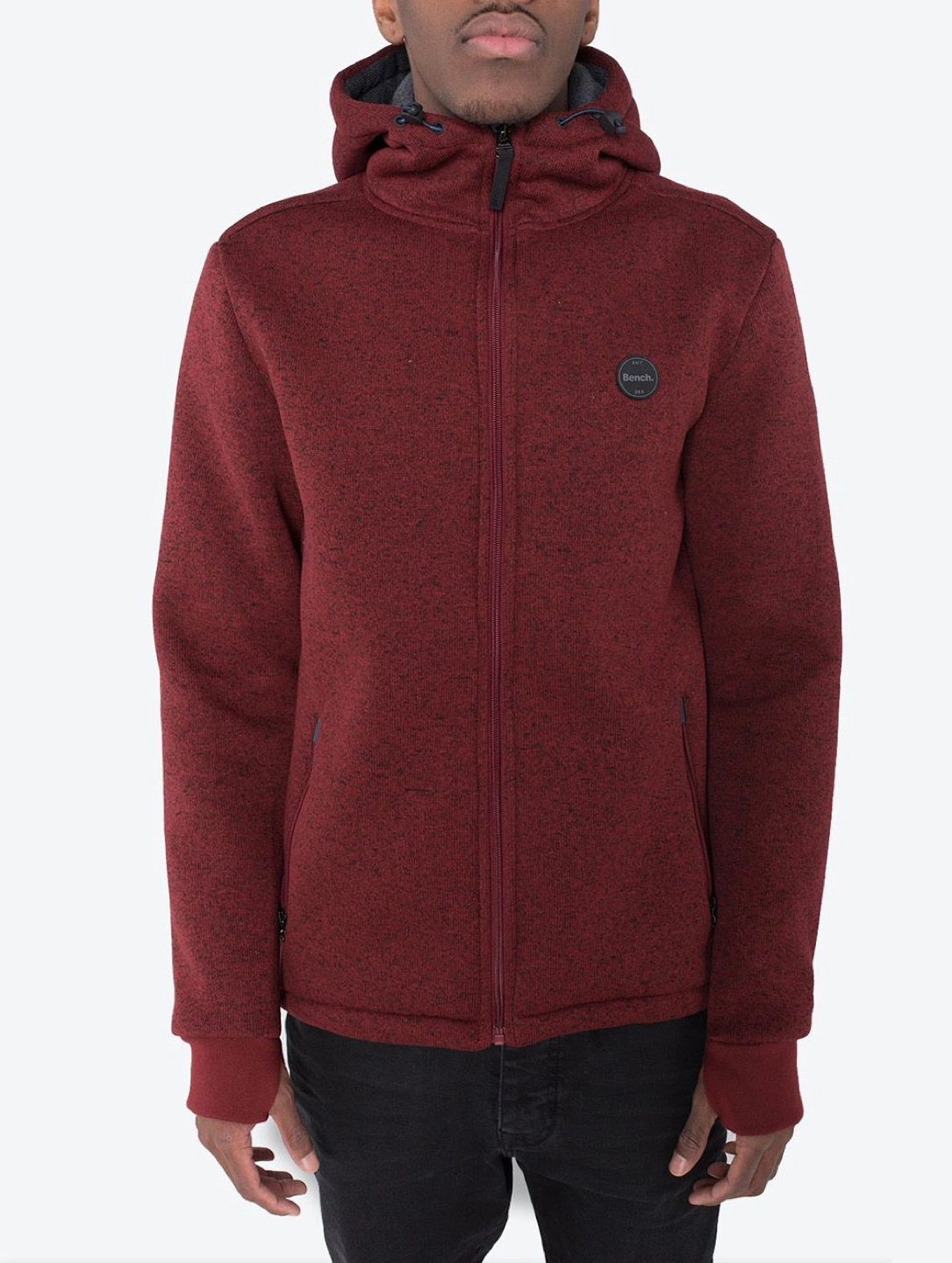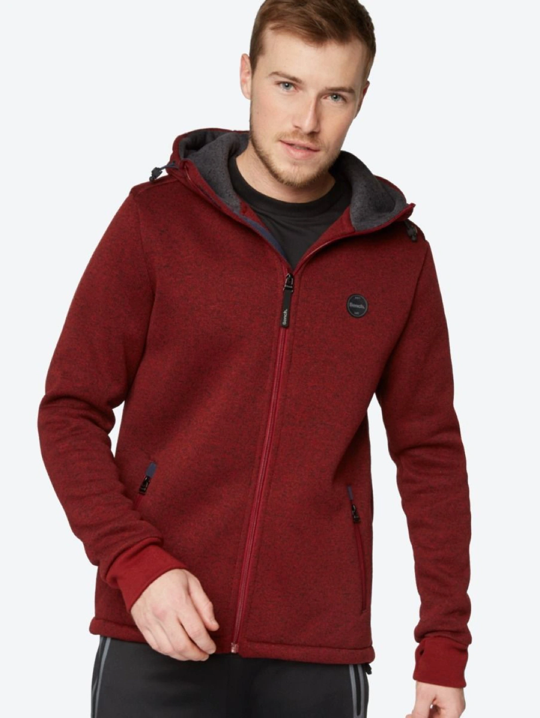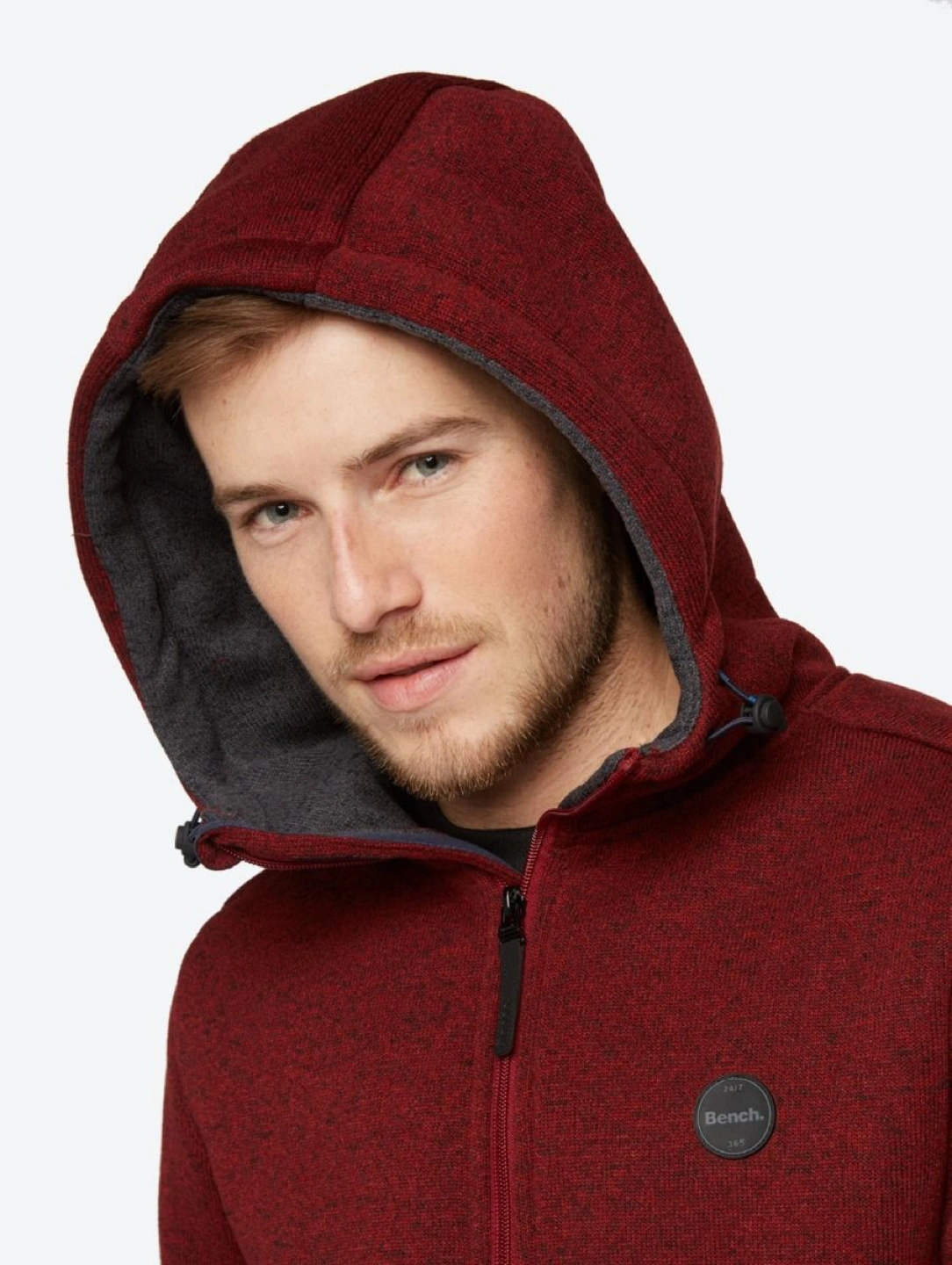 Hood with drawstring, rubberised Bench badge on the chest, ribbed sleeve cuffs with thumb holes, drawstring in the hem, two zip pockets, zip with chin guard