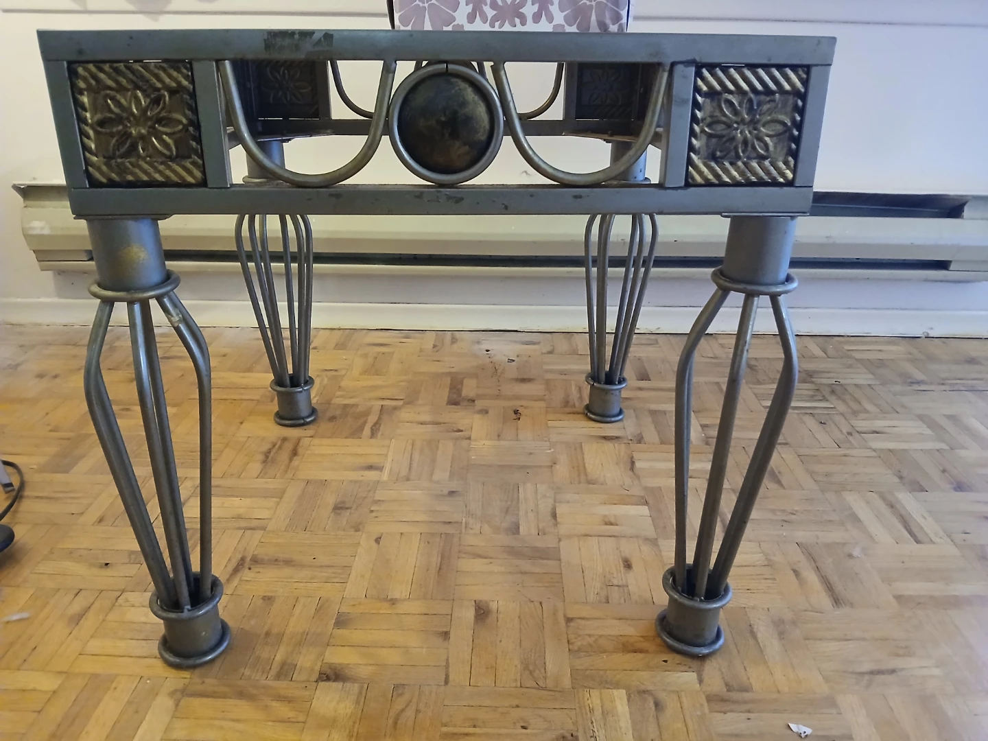 Selling two unique glass-top coffee tables with a metal frame. in good condition and would be a great addition to any living room or seating area. It features decorative metal accents and sturdy legs, adding a touch of elegance to your space
